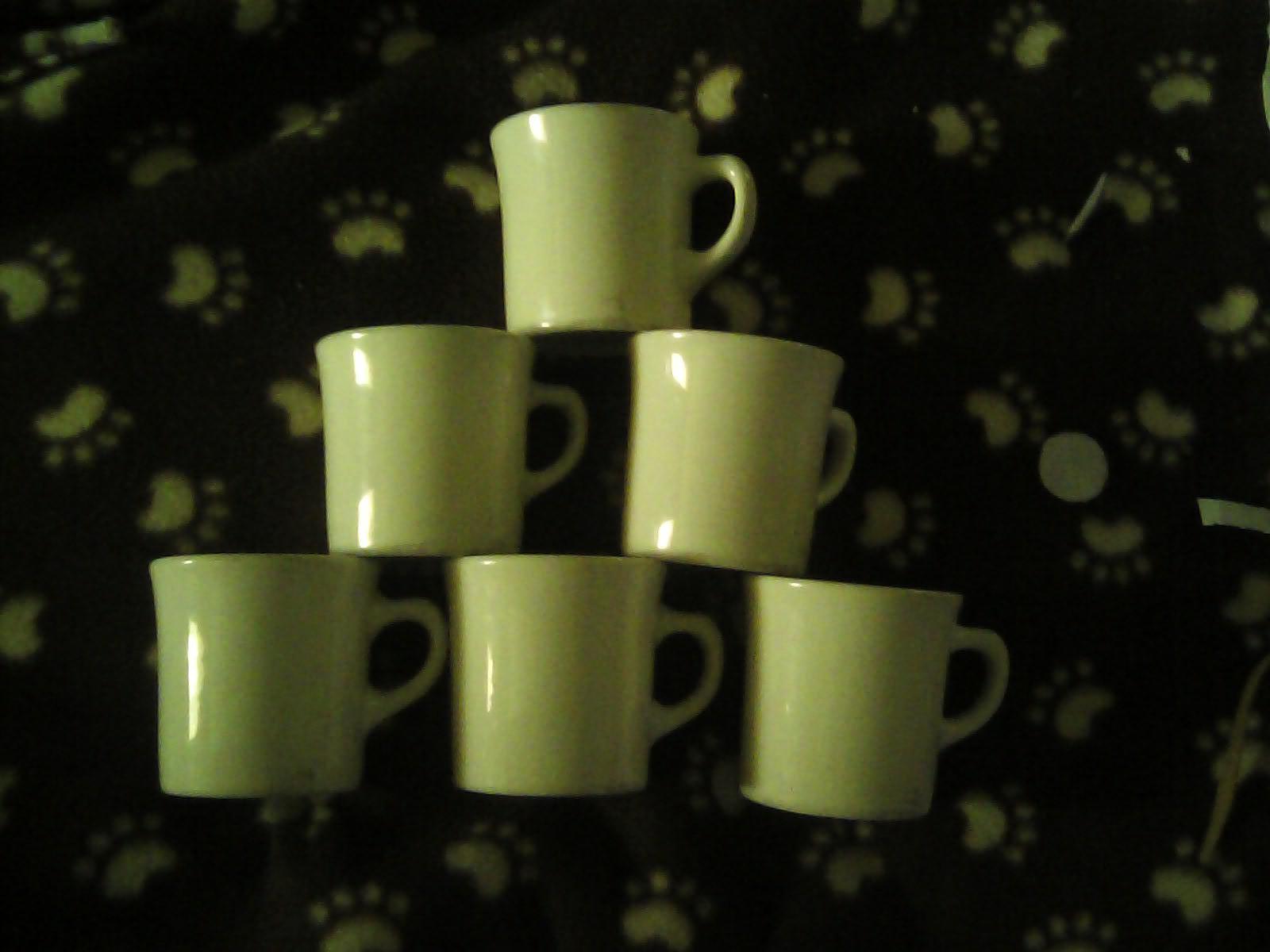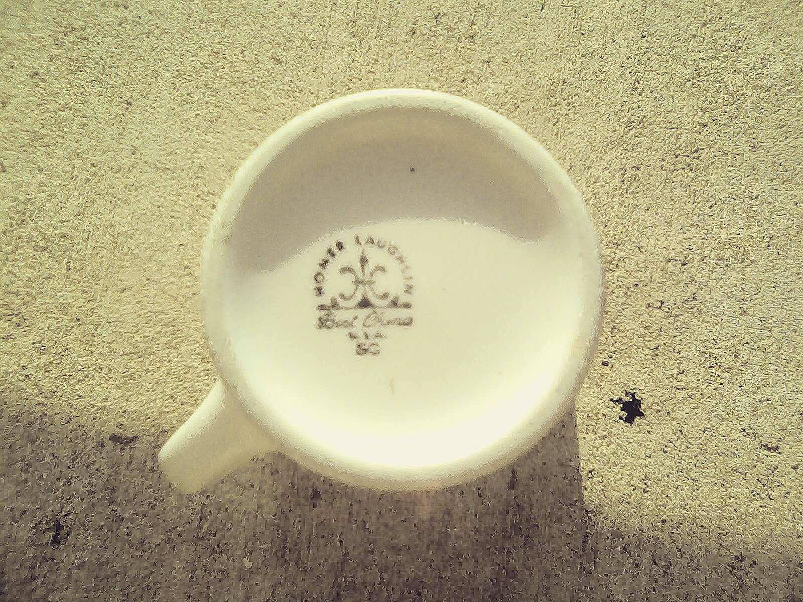 I and my grandmother bought a set of six Homer Laughlin mugs from a resale shop a few days ago, and she has asked me to research them and see if they're worth anything. They're a cream/ivory/antique (aged) white color, just barely over three inches tall, old by our guess if going by appearance, I believe they're from the "Restaurant Wares" line, and the stamp on the bottom says "Homer Laughlin Best/Boot/Bsol China U.S.A. SC" (we can't figure out which of the three B words it is, or if it's something different).
