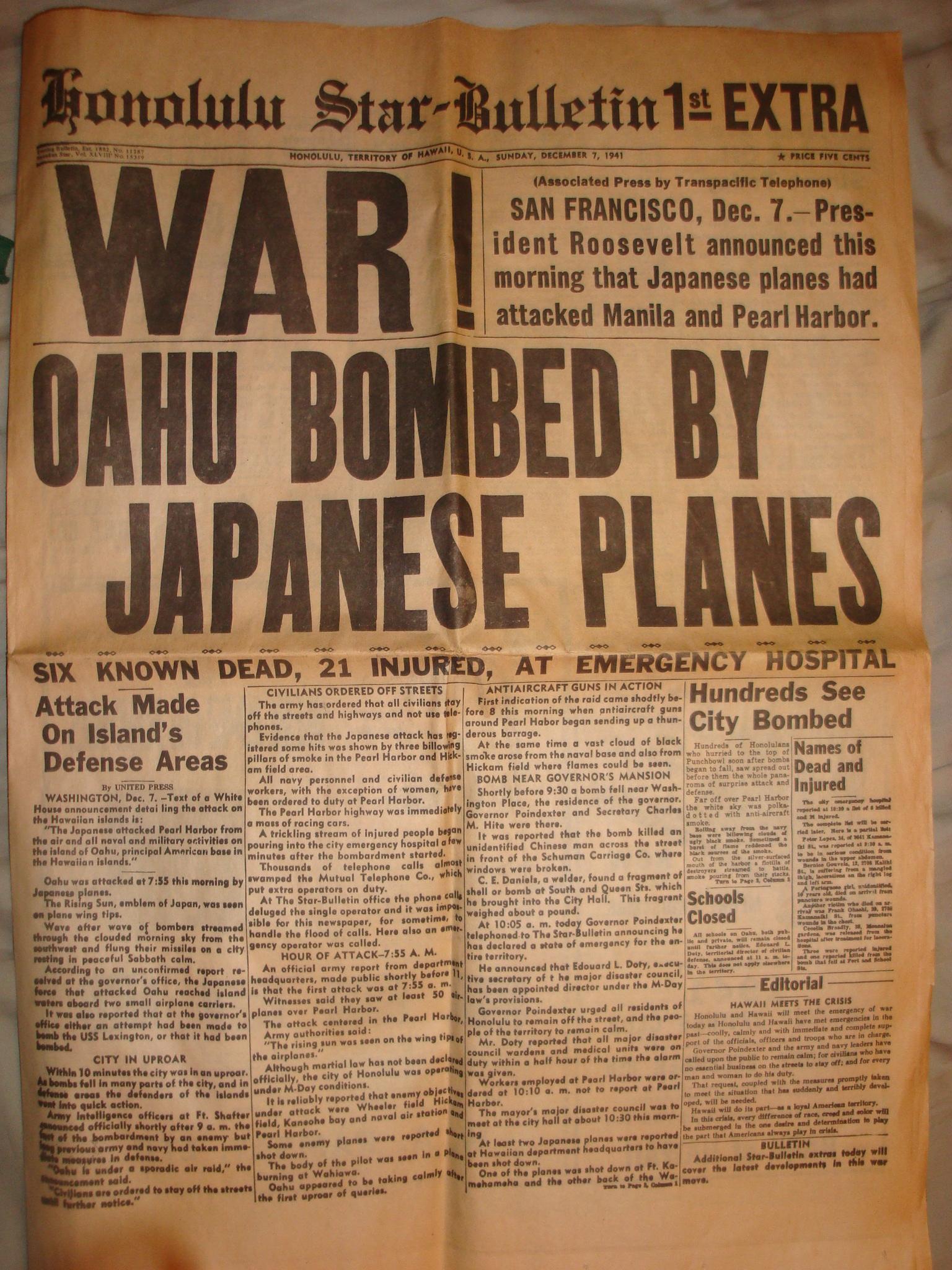 I would like to know if this is real. I have a "Honalulu Star Bulletin 1st Extra" Newspaper and I rreally can't tell if it's real or not. Any suggestion and I would greatly appreciate it. Thank you for taking the time to read this. I live in Delaware and don't really know where I could take it to be appraised...