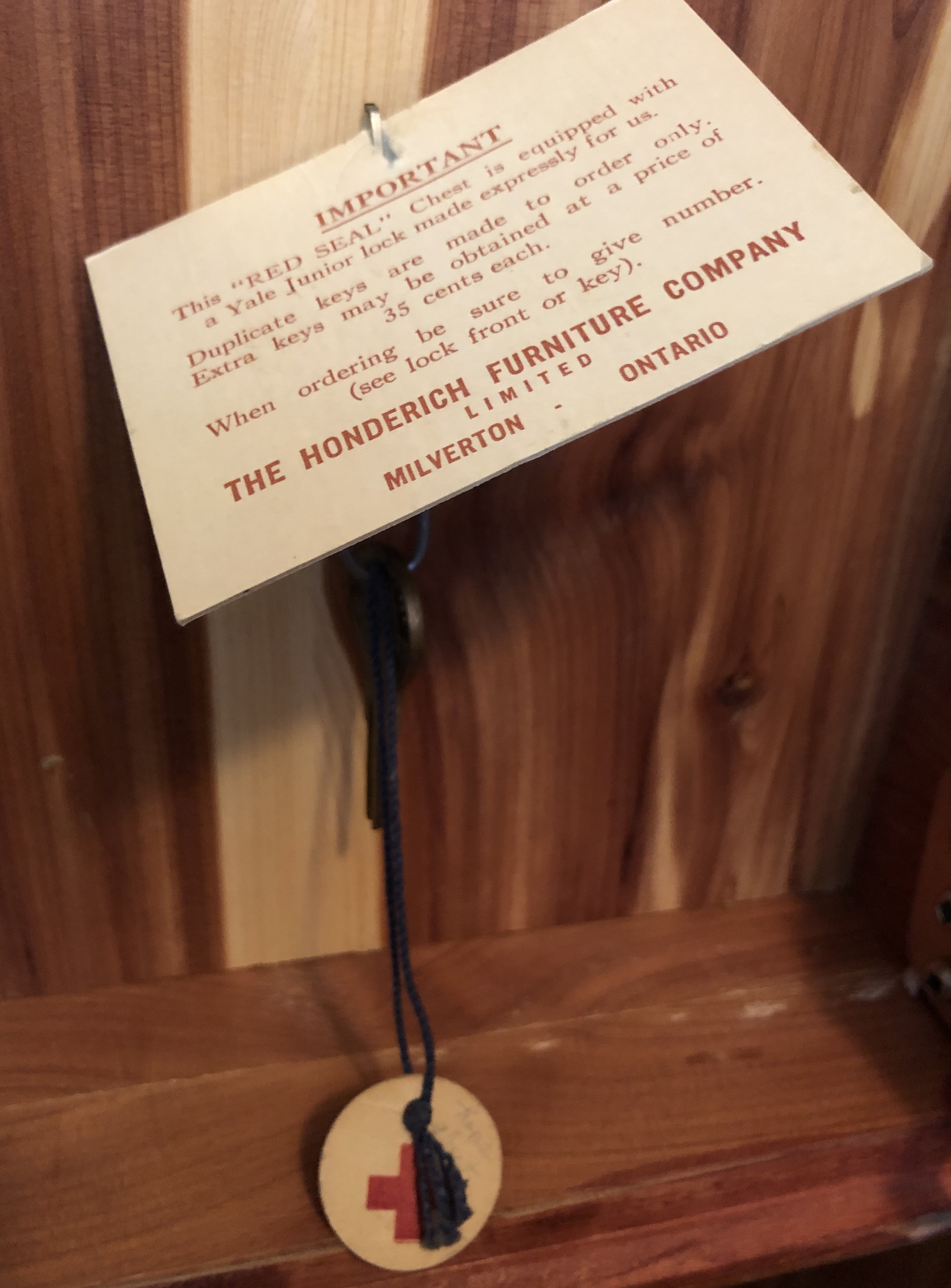 This cedar chest belonged to a deceased aunt and we are unsure of age.
