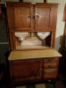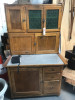 Historical Context: Hoosier cabinets became popular in the early 1900s, particularly in the Midwest, as a multifunctional kitchen storage solution. They were designed to streamline food preparation and storage, reflecting the era's emphasis on efficiency in the home. Various manufacturers produced these cabinets, with some of the most notable brands including Hoosier Manufacturing Company and McDougall. This particular piece likely dates from the early 1900s.