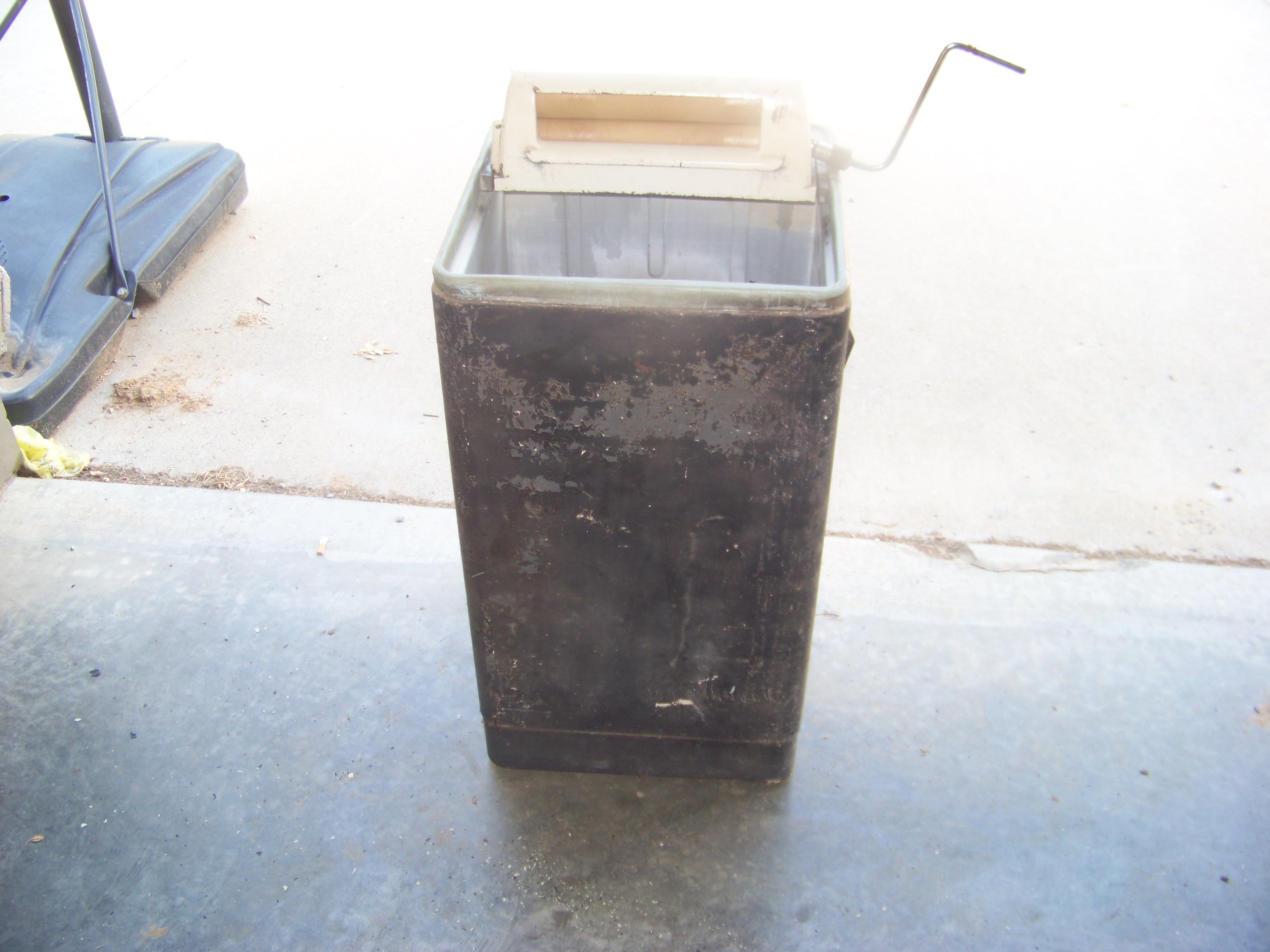 Mother inlaw had this item stored in her garage , stated he mother bought it around 1952 . It was painted black at one time. All original and plugged it in and still purrs like a kitten