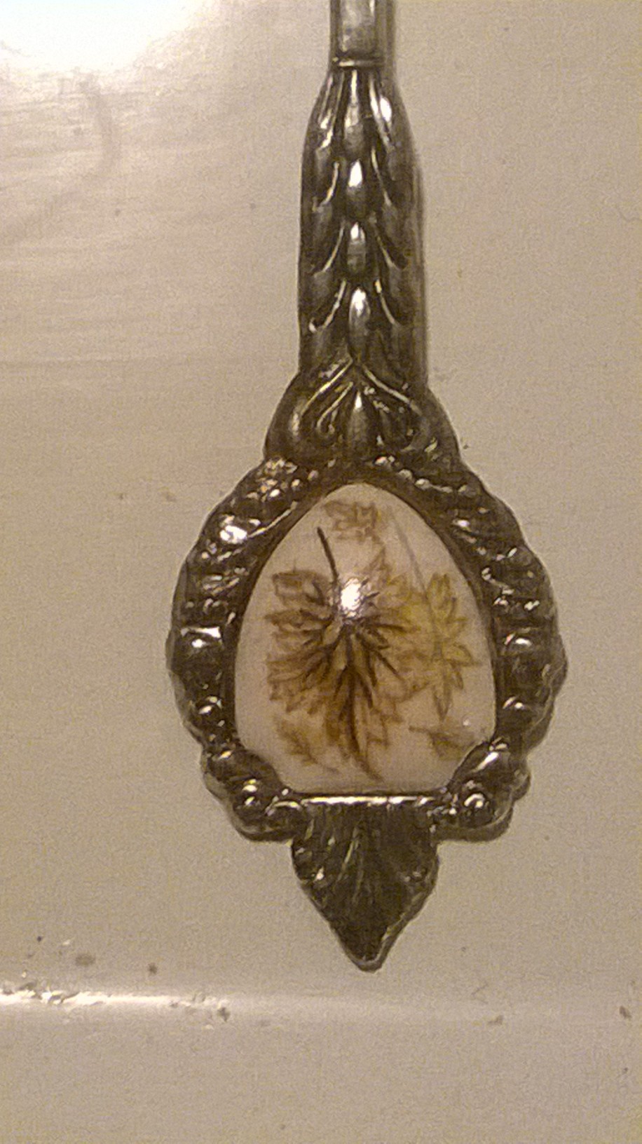 Distinguishing marks No marks. Just the decorative porcelain piece with the trees on it