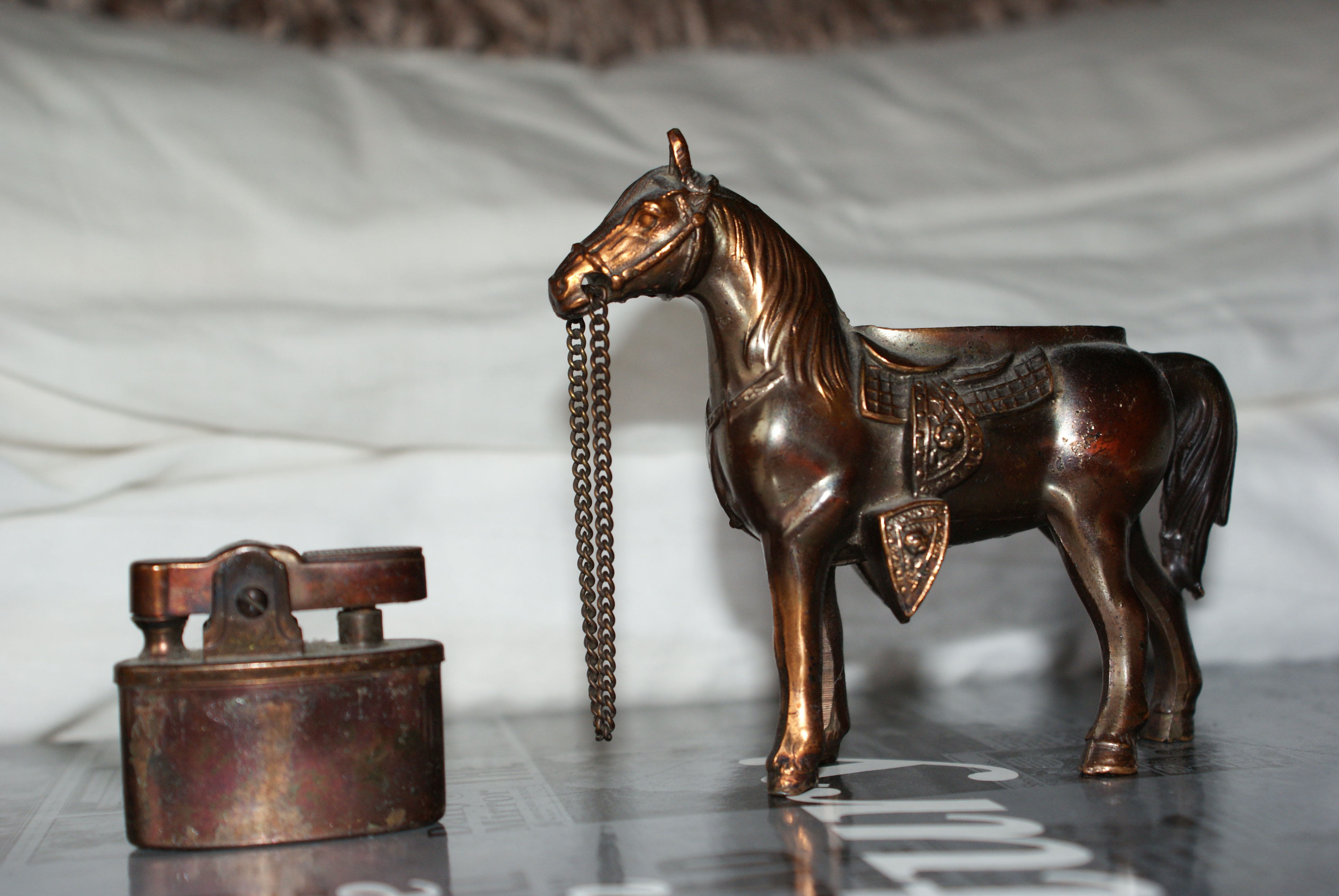 i found this item at a friends house and they wanted me to find the value.could you please help me with an estimate for the price of this item.i know very little about the item i can tell you that the fint wheel in the lighter does not move and the horse is missing a ear. thank you