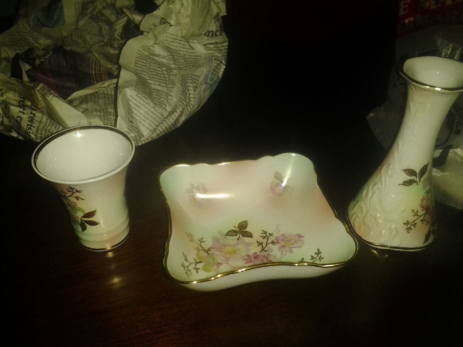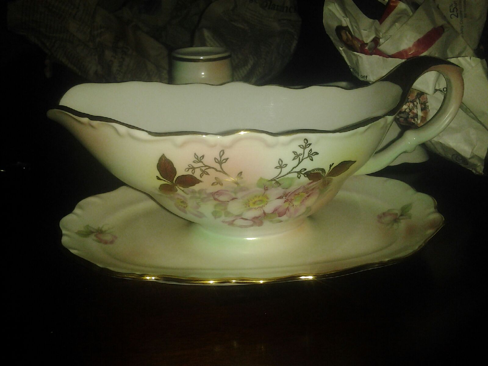I have several pieces a gravy boat, 2 candle sticks, a nut dish, salt and pepper, small platter