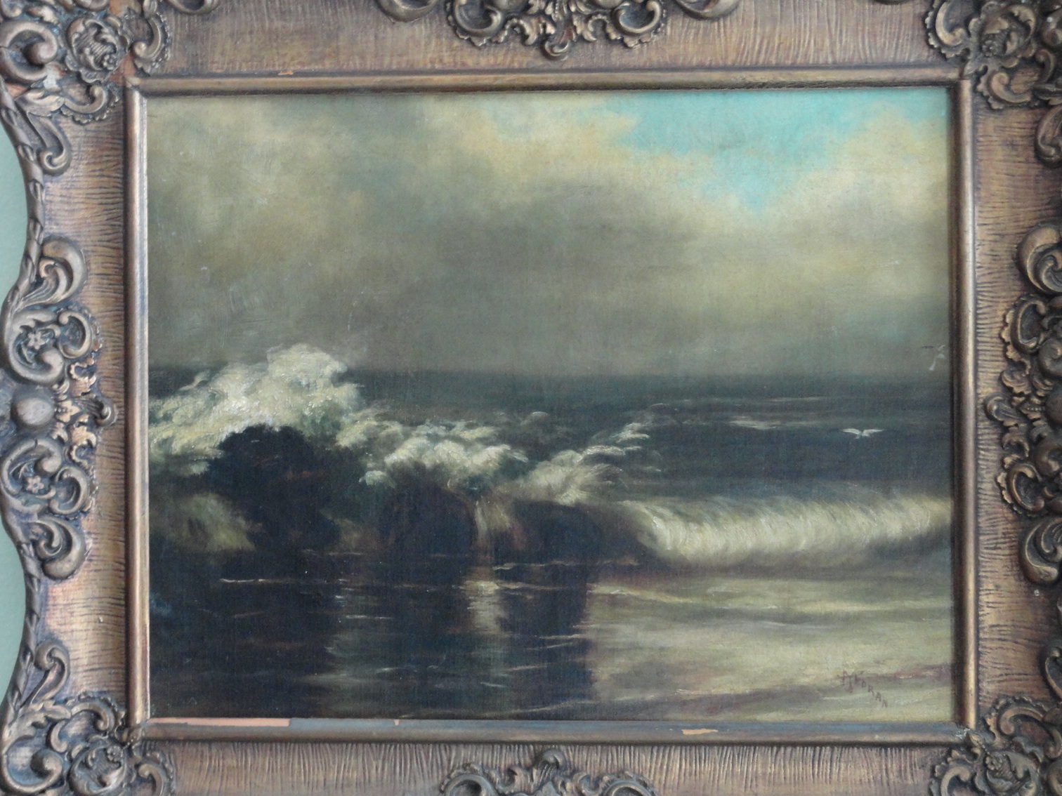One of many of Hudson River School artists, discovering the wonders of landscape is Tomas Moran (1837 -1926). He was an artist of broad interests whose body of work included images based on historical and literary works, marine subject. In the 1880 his long-time entusiasm for marine pantings grew stronger following his move to East Hampton, Long Island.