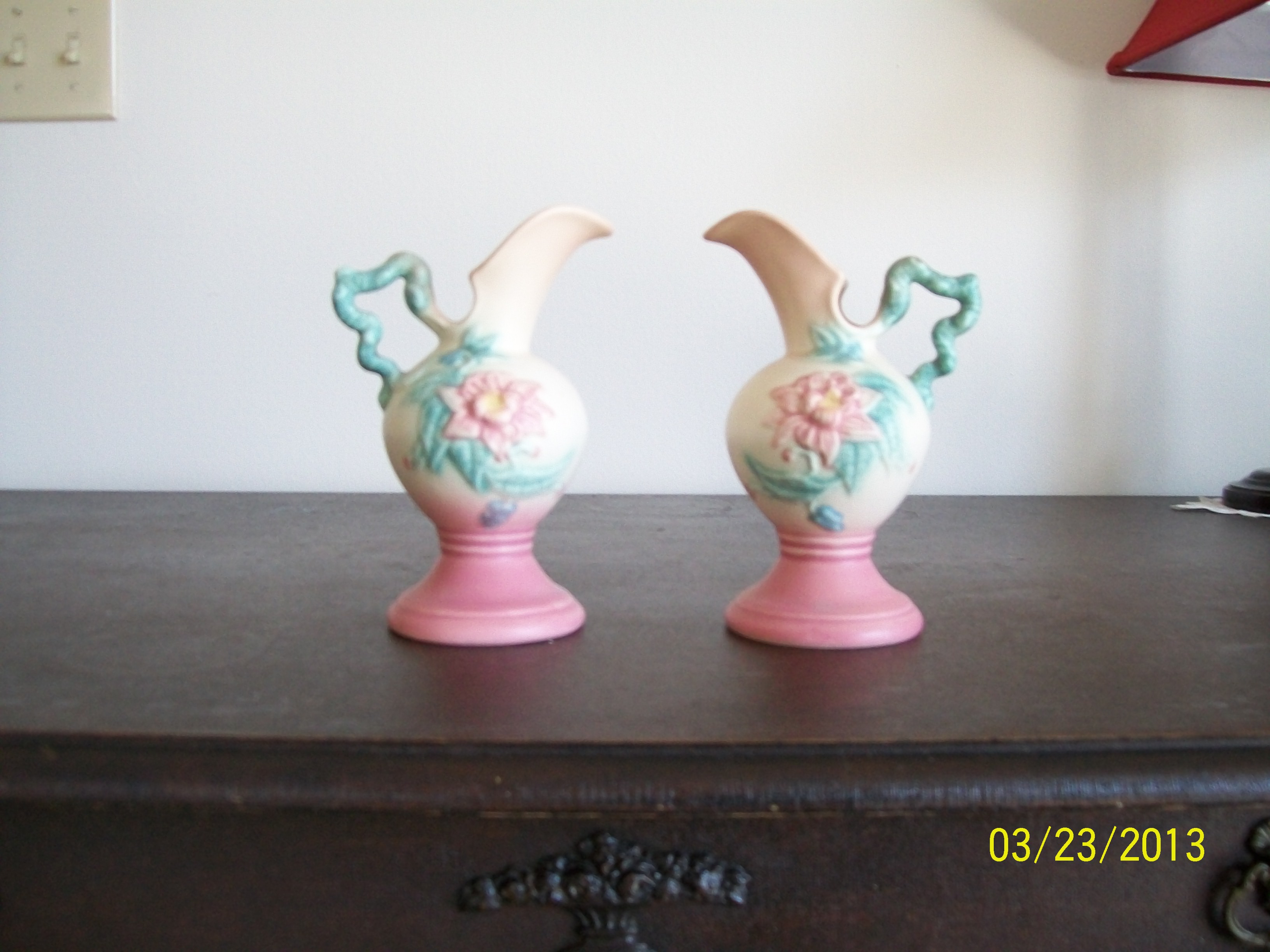 These were my grandmother's vases. Both have the original Hull Pottery sticker on them. The sticker says Crooksville, Ohio. On the bottom it has: Hull w-6 61/2" USA.