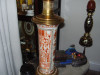 The metal with painting on it is mounted on wood. The painting is affixed to the the frame that has a burlap background. The frame itself is gold toned. The edges of painting are worn down a bit. The subjects of the painting appear to be traced on and then filled in with paint. The entire painting is covered with a glossy finish. Some of the paint used has a gold component in the color. The surface of the painting (the metal) is wavy and is not perfectly smooth.