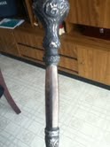 It is black silk with mother of pearl handle, engraved on the bottom is Mrs (Dr) Bogart