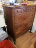 This is a Huntley Simmons Bedroom suite with vanity. The dresser is a 5 drawer dresser. The bed is a posterbed with two night stands. The vanity has a large drawer in the middle a drawer on each side with a larger drawer under it. The 5 drawer dresser comes apart with the top coming off. This was bought in NC by my grandparents in the early 1900's
