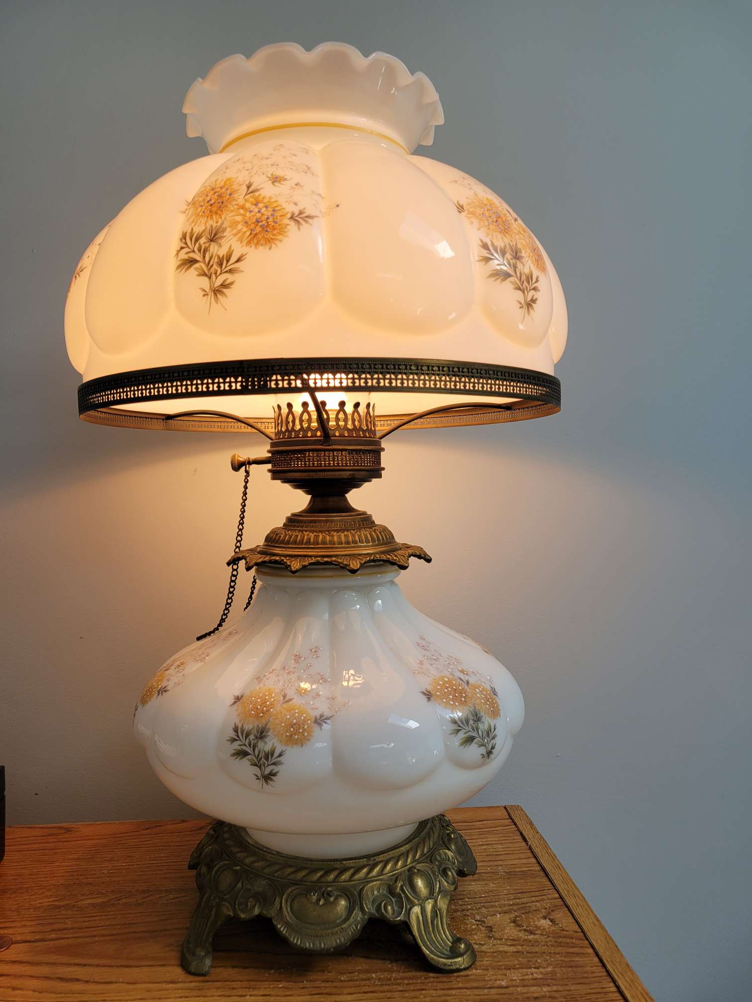 Lamp bought at a local store. Merchant believed it is called a "hurricane" lamp most likely from the 1970s.