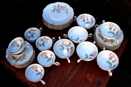 This set is in perfect condition and features 6 small dinner plates, 6 soup bowls and saucers, and 6 tea cups and saucers. On the back it says Hutschenreuter Selb, Bavaria, Germany, 1814, Sylvia. I want to sell it but not sure what it's worth?