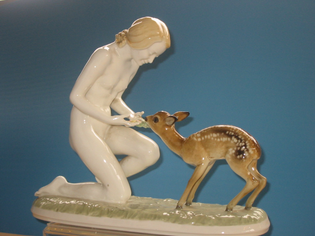 This Hutschenreuther lovely glazed porcelain figurine named "Good Friends" is prized by collectors. I believe its marks and numbers date it to the mid l940s.