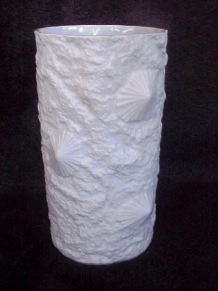 Exterior of Vase Resembles Seashells Embedded in the Sand and feels like bisque porcelain with a matte glaze. Interior has a semi-gloss white glaze.