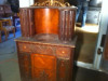 Ornate crown molding and scrollwork; beveled glass; matching wood finish