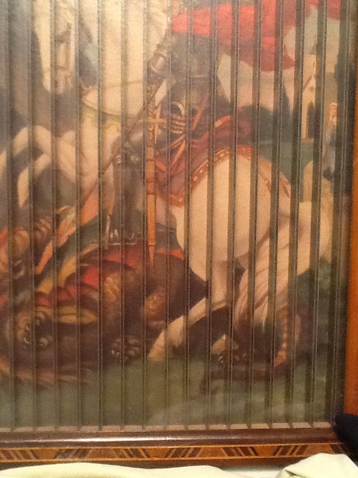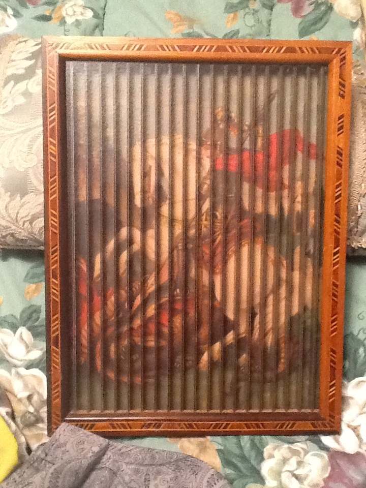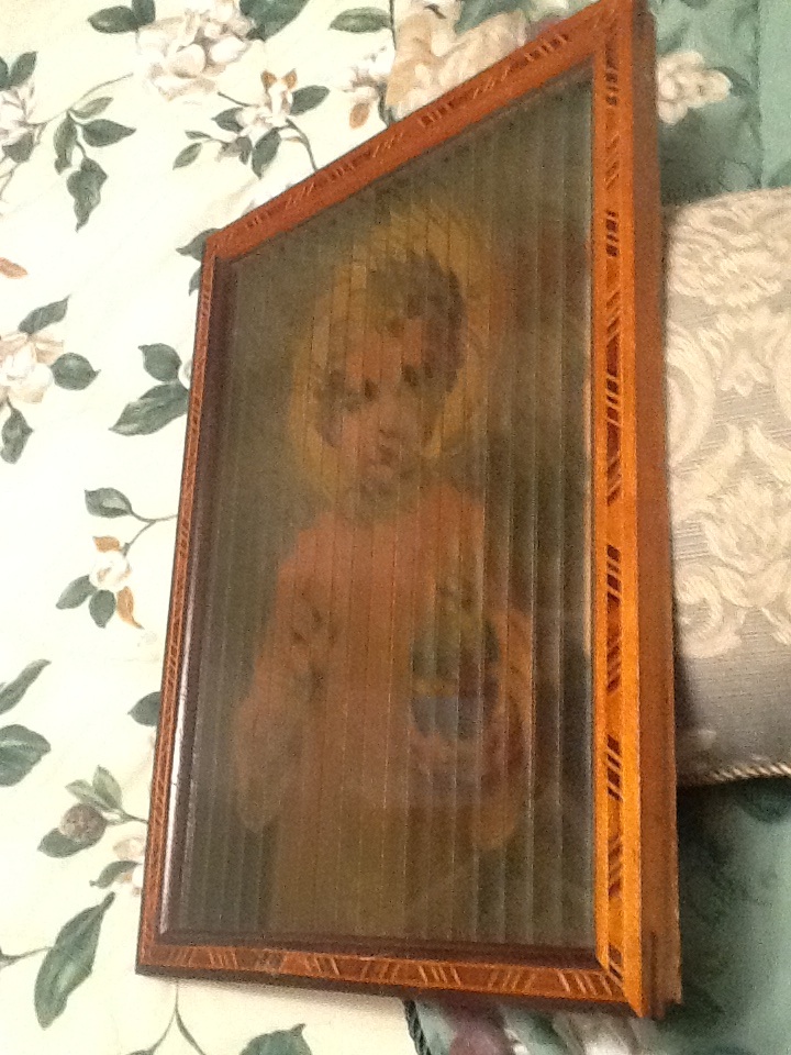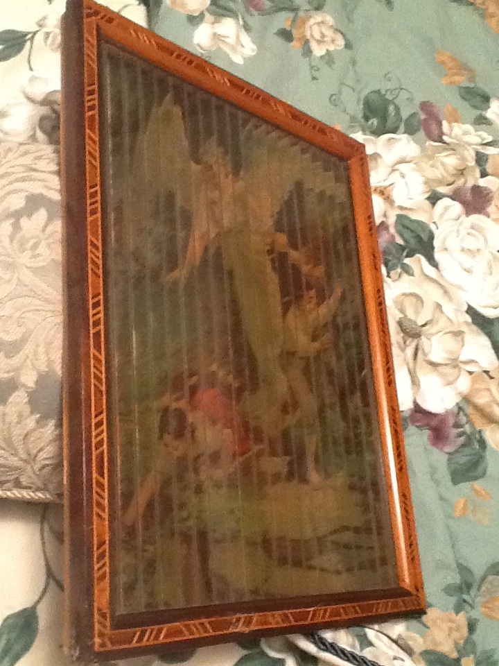 I have an antique "changing picture" frame. Inlay wood on frame, pic changes as you walk by. Crusader/ saint/ sacred heart? What is this?