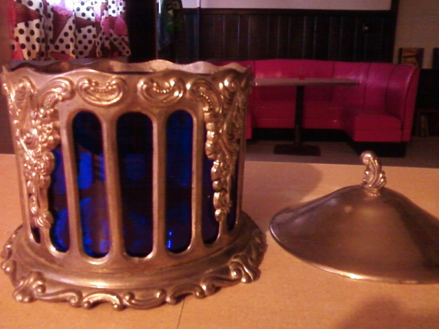 I collect vintage godinger silver plate and purchased this at an estate sale a while back. Its definitely Godinger but i can't find anything like it online to compare it to. Its in the baroque style that got them in so much trouble but its footed with a cobalt blue glass insert . Can anyone tell me more about this beautiful peice, such as when it was made and what it might be worth?