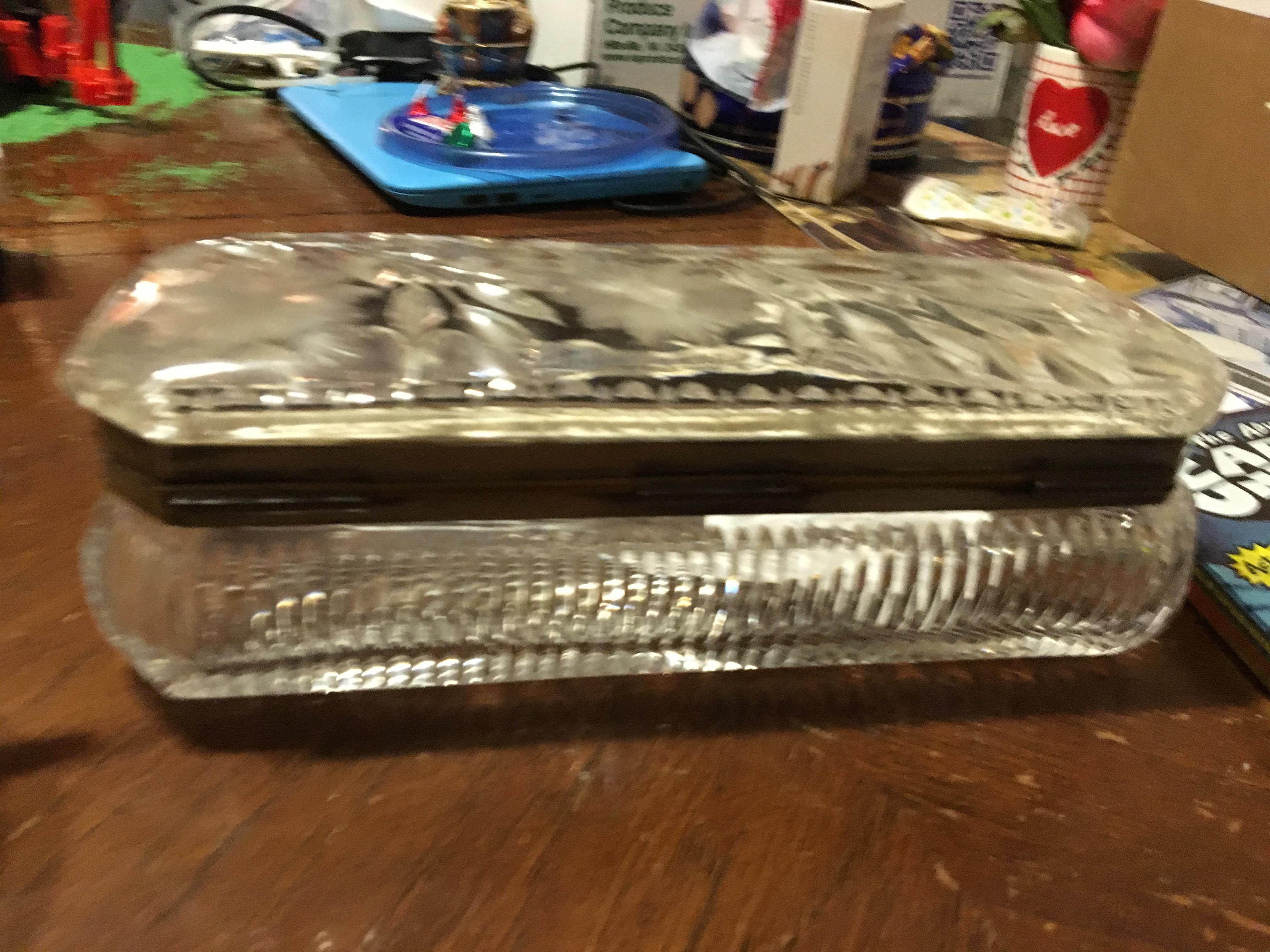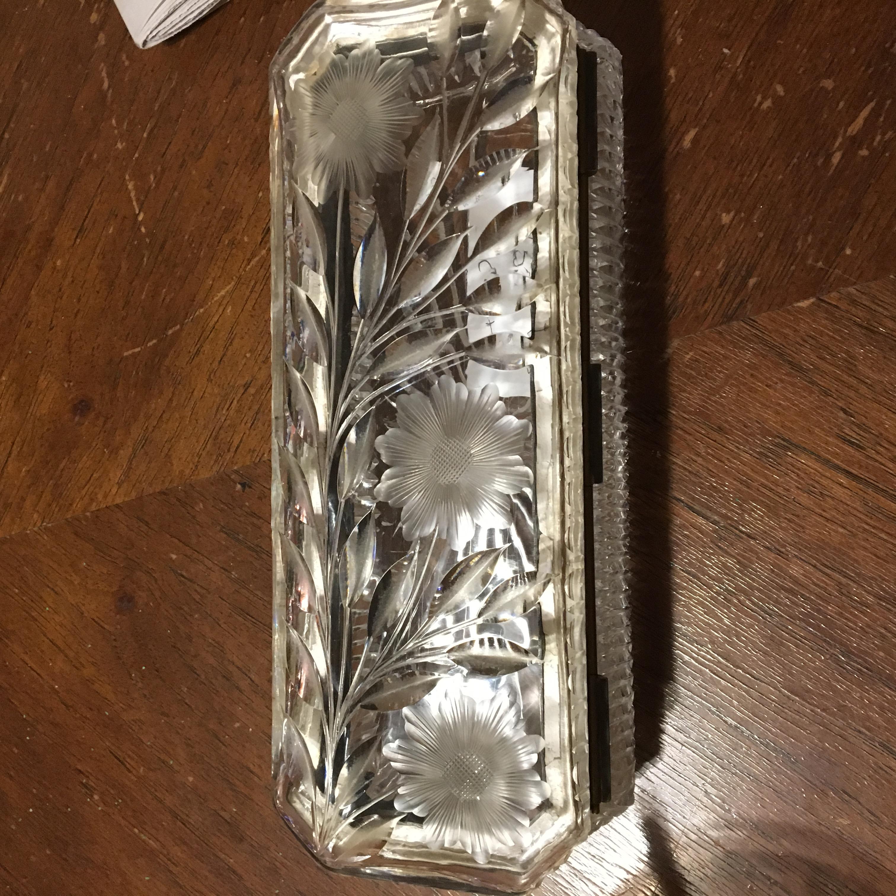 This is a 3rd generation passed down 1800’s erra crystal casket jewelry box I would like know more about it and the maker of this im not so much worried about the value as it will continue to get passed down it is Europian that is all I know about it as I just received it there are no markings on this item not that I can see