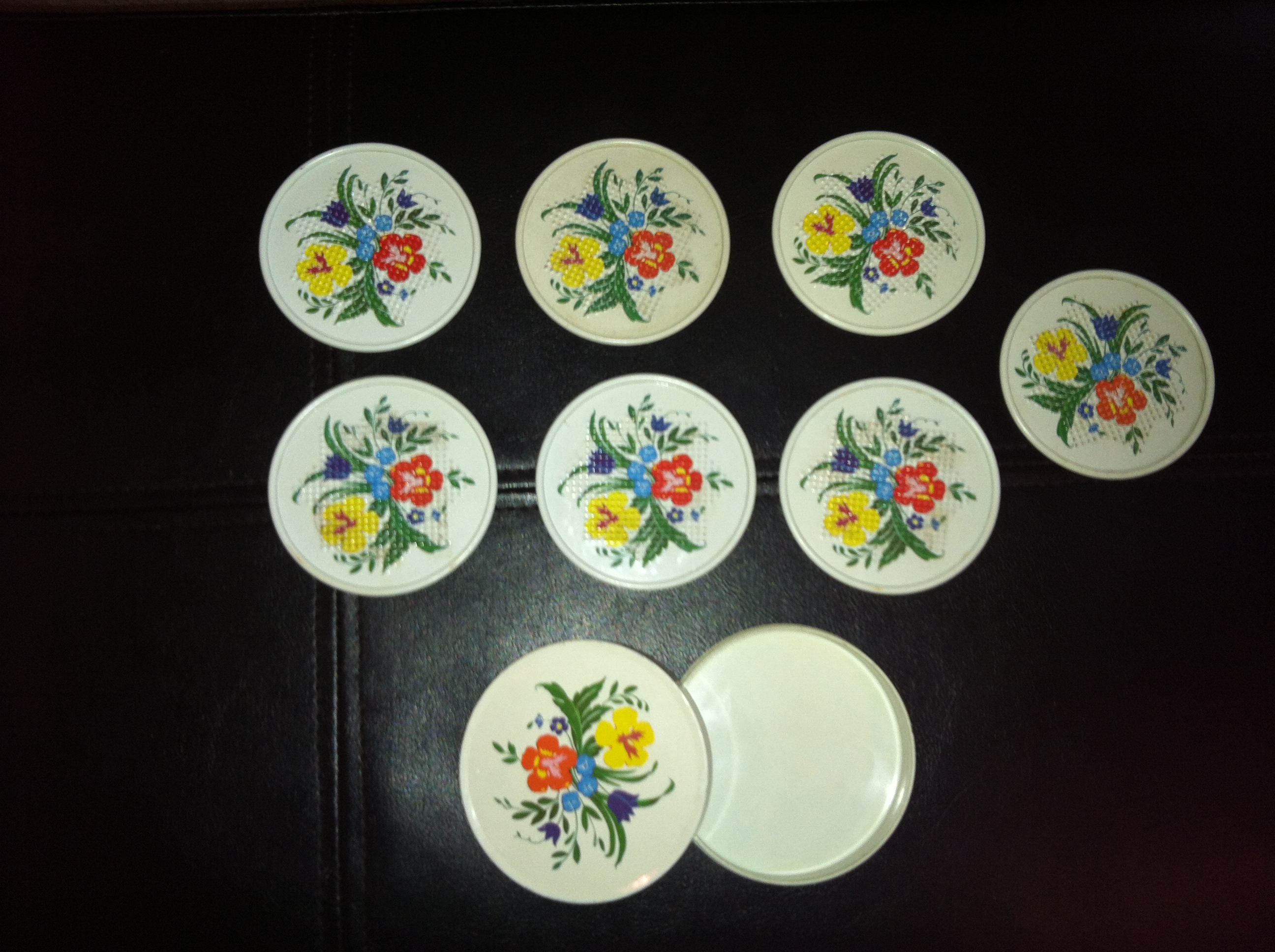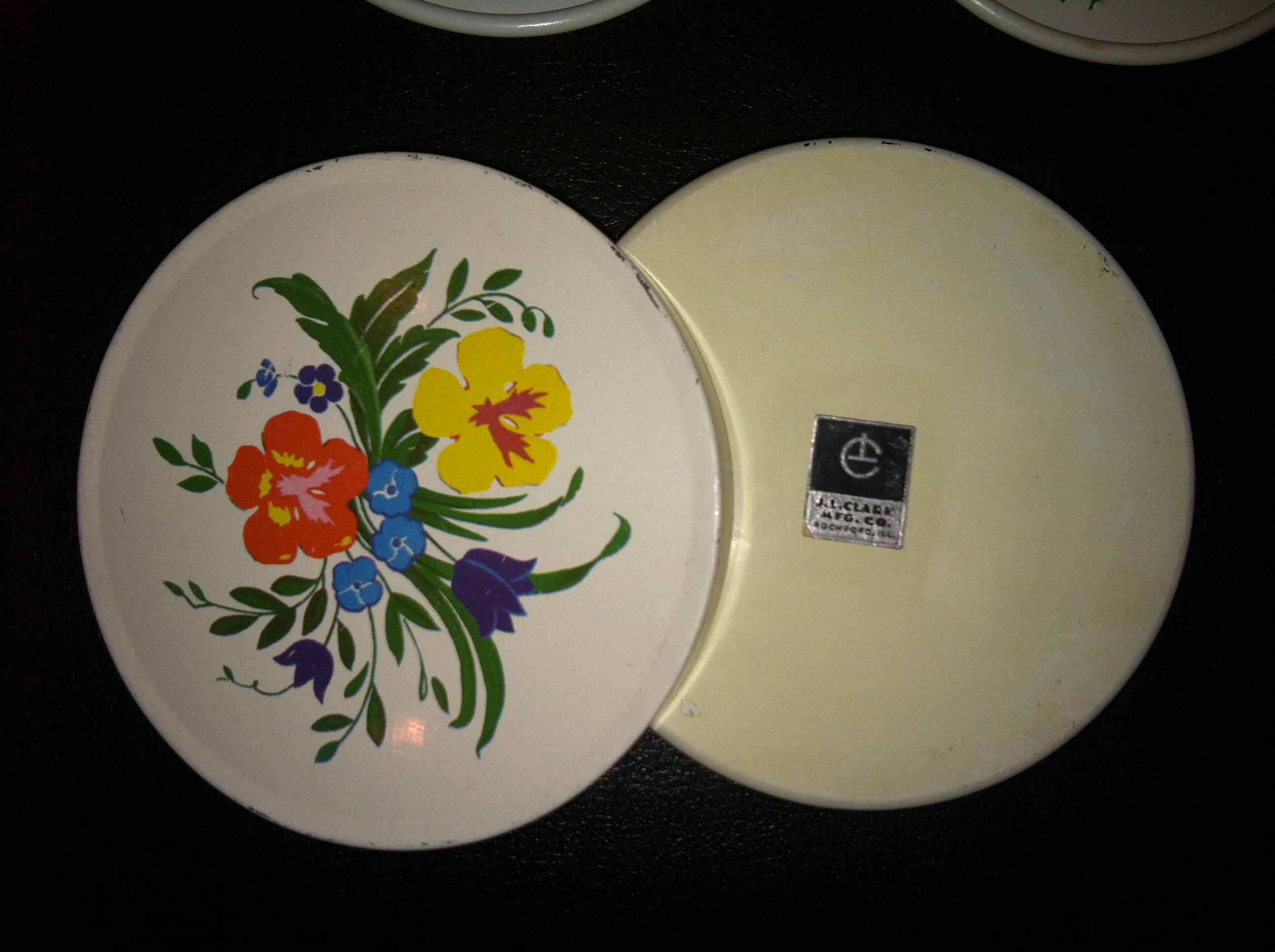 Re: I think 1950's J.L. Clark metal coaster set with holder