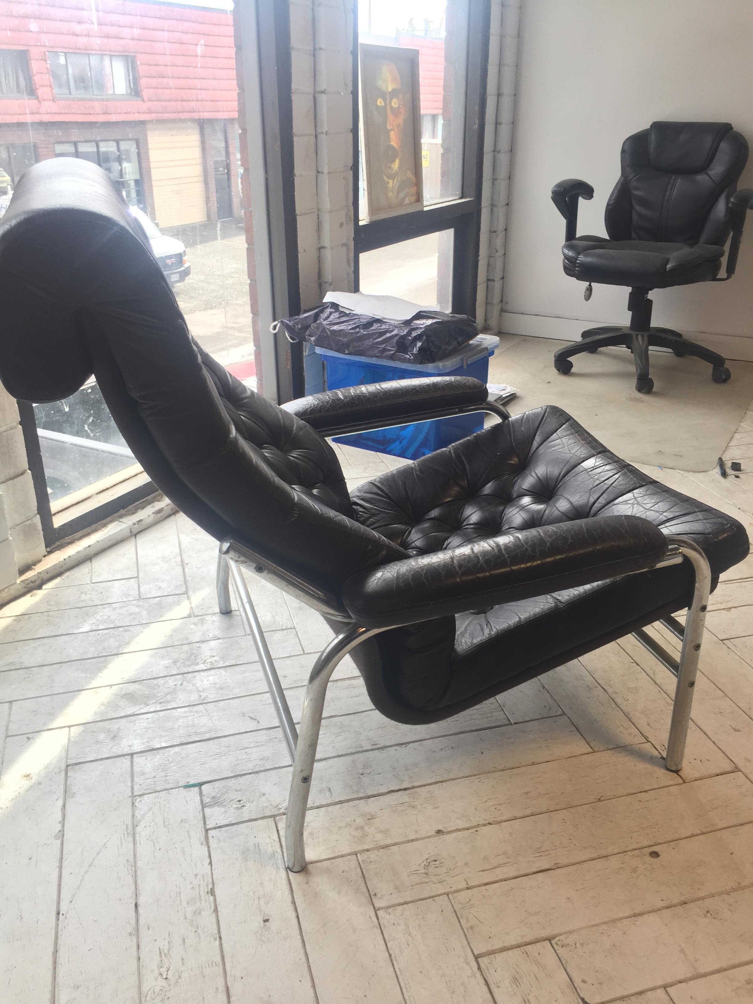 I believe I have vintage Ikea Poem chairs designed by Noboru Nakamura circa 1970-1977. The only issue is that the majority of the ones I find online are wood base, but my is a chrome metal base. I believe these originally had wheels, but mine have been taken off (still have the posts used to put wheels in place).
