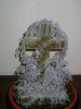 This is a glass dome immortellie globe - inside is a 12"tall green velour covered cross on a pyramid base - surrounde by glass beaded flowers with silver or pearl inserts for the blossoms - gold beads for the stamens - beaded flowers are cala lilys, hyacainths, baby's breath, clovers and others that i can't decide. Globe is 14" high x 12" dia - mounted on a 14" turned rosewood base.