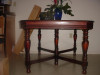 I picked it up at a yard sale in Northwest PA because I loved the look and the mechanics of the piece. The manufacturer label found on the underneath part of the leaf is in bad shape and not legible other than Imperial Furniture Company. I'm not sure how old it is, 40's maybe? I would like to lightly sand and varnish the piece to bring it back to life but don't want to detract from the value in doing so. Does appear to be mahoganey which is true to Imperial. What can you tell me about it, and if I am to sell it as-is what is the value versus if i fixed it up?