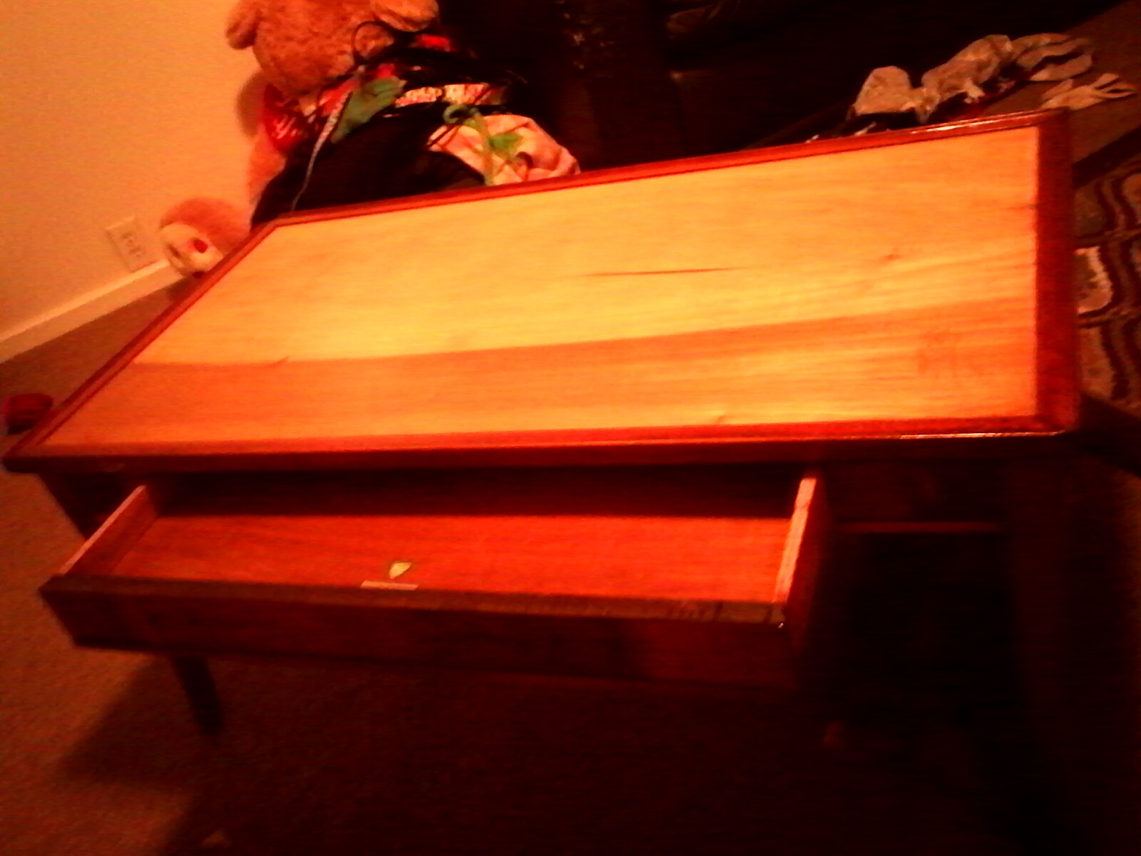 Its a simple little table in good condition the legs sides and trim are darker and the table surface is a lighter color. I don't know much about it my grandma gave it to me it has two stickers inside the drawer one is the imperial grand rapids mitc. Logo and the other is the mahogany association inc. Logo with the number 123 on it and on the bottom 2008 is stamped on in bold black numbers, I don't know if this is the date or product number or what. I was going to redo it until I saw these stickers. I'm just curious on how much its worth.