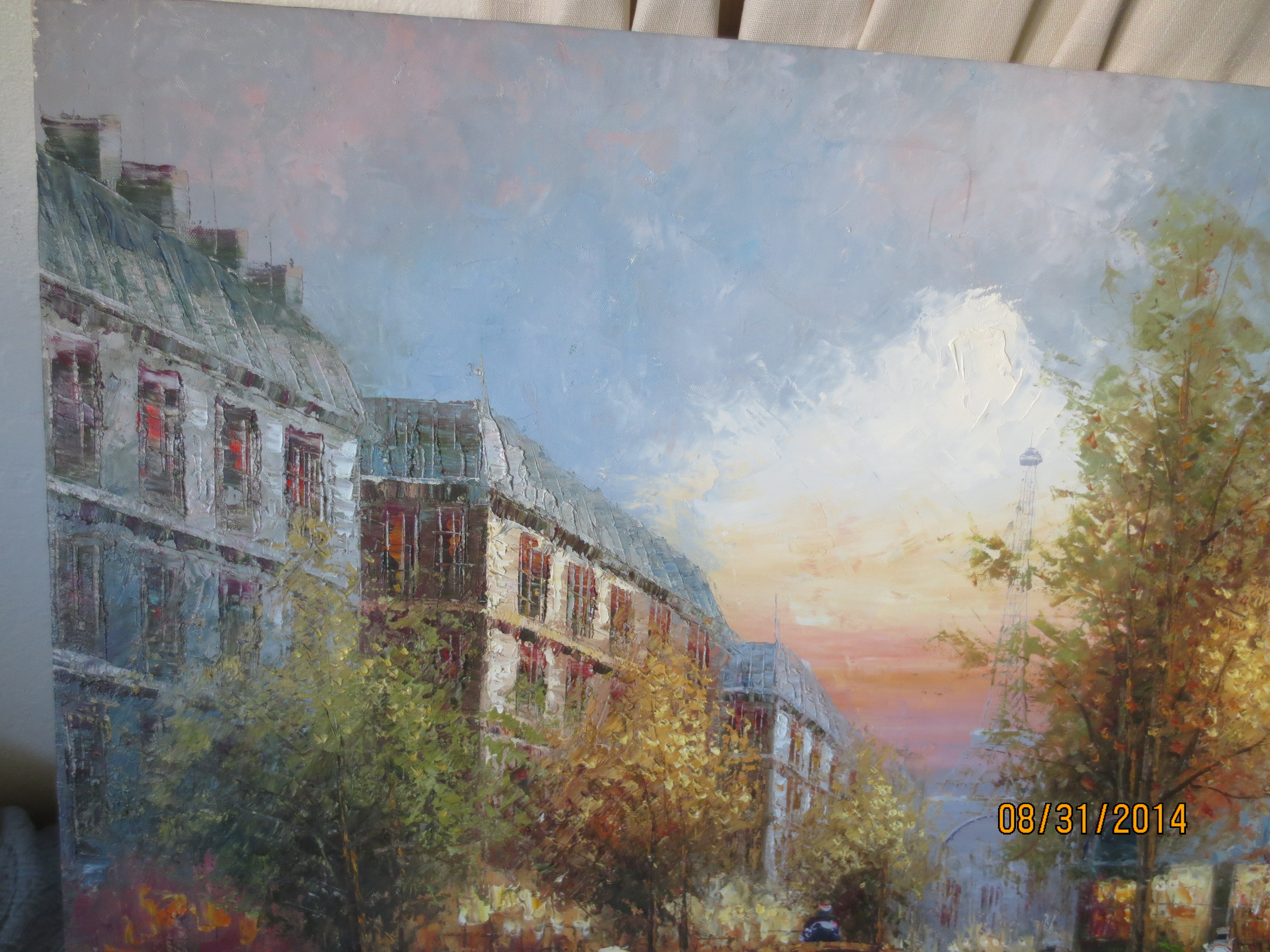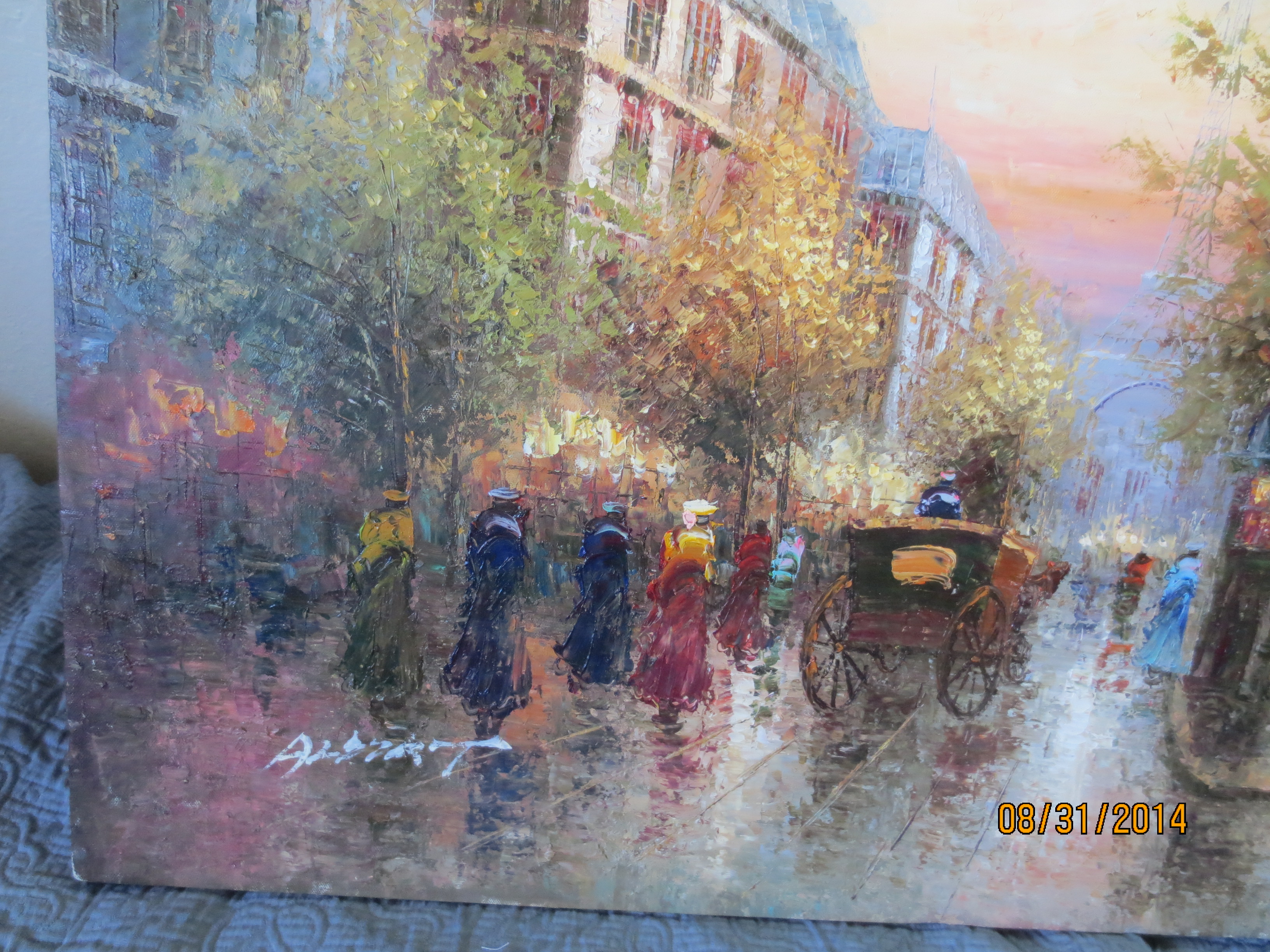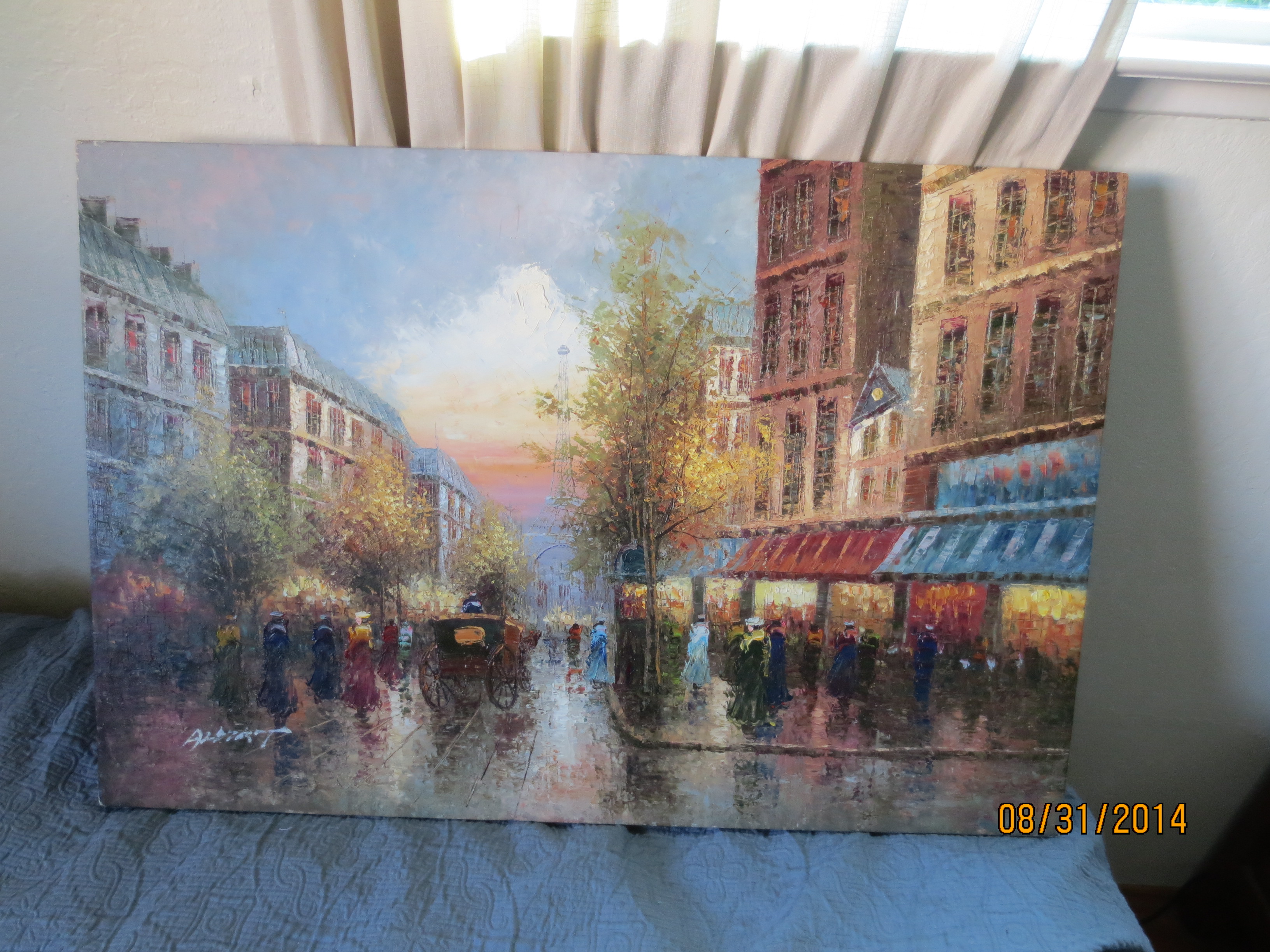Very nice impressionist oil on canvas.  Canvas is stapled to the frame.  We have tried to identify the artist but are unable.  Looking to find out if painting value and who the artist is.  Painting measures 24 by 36 inches.