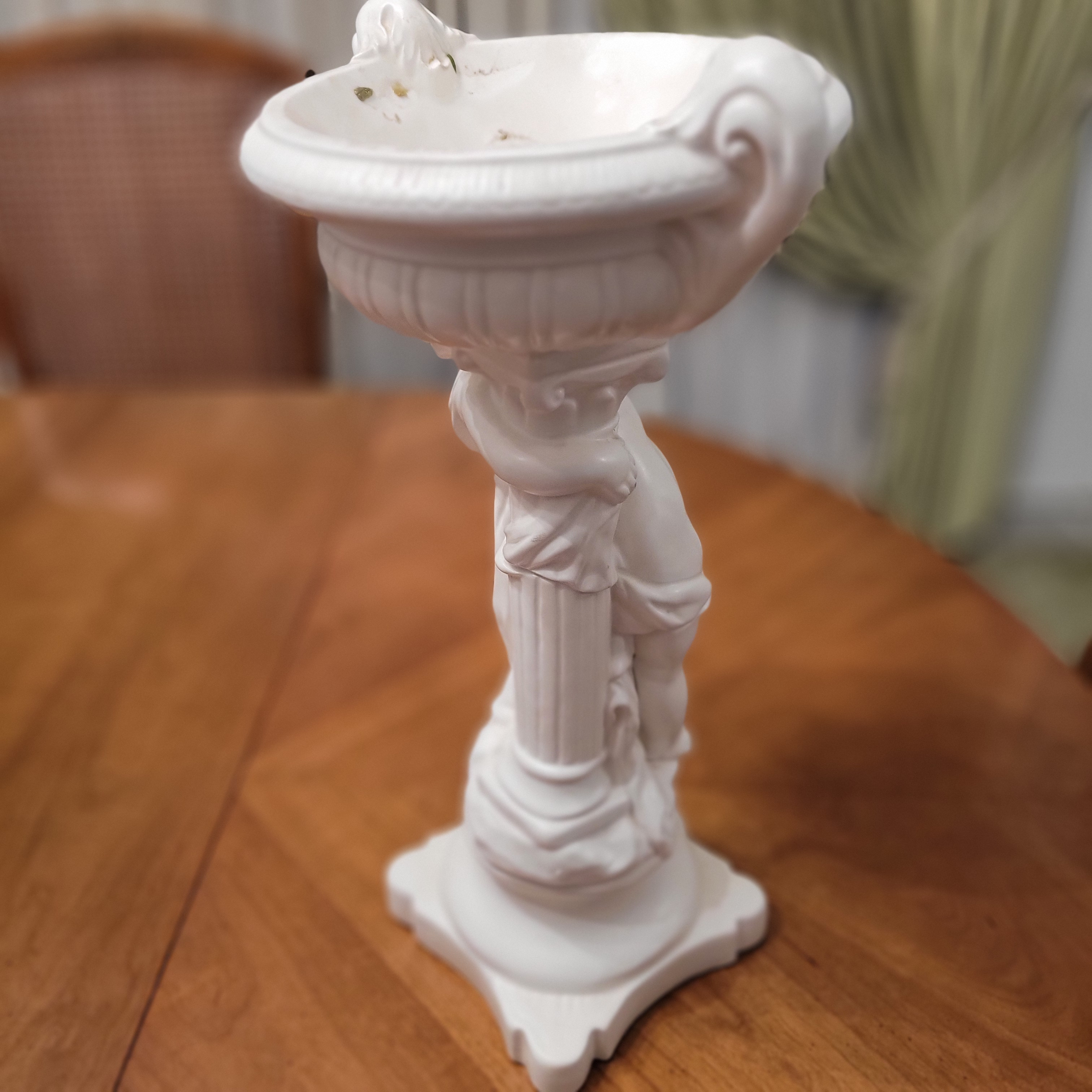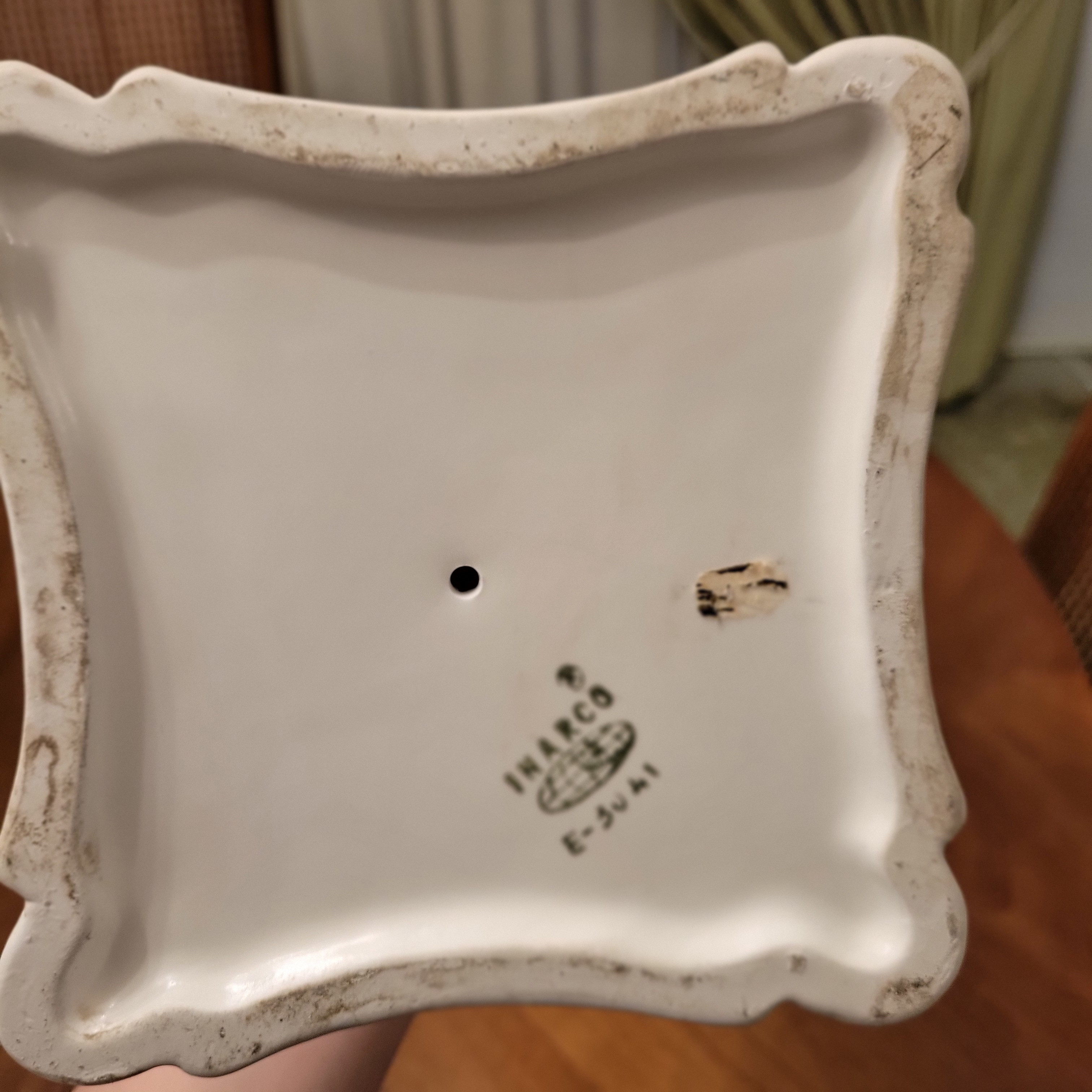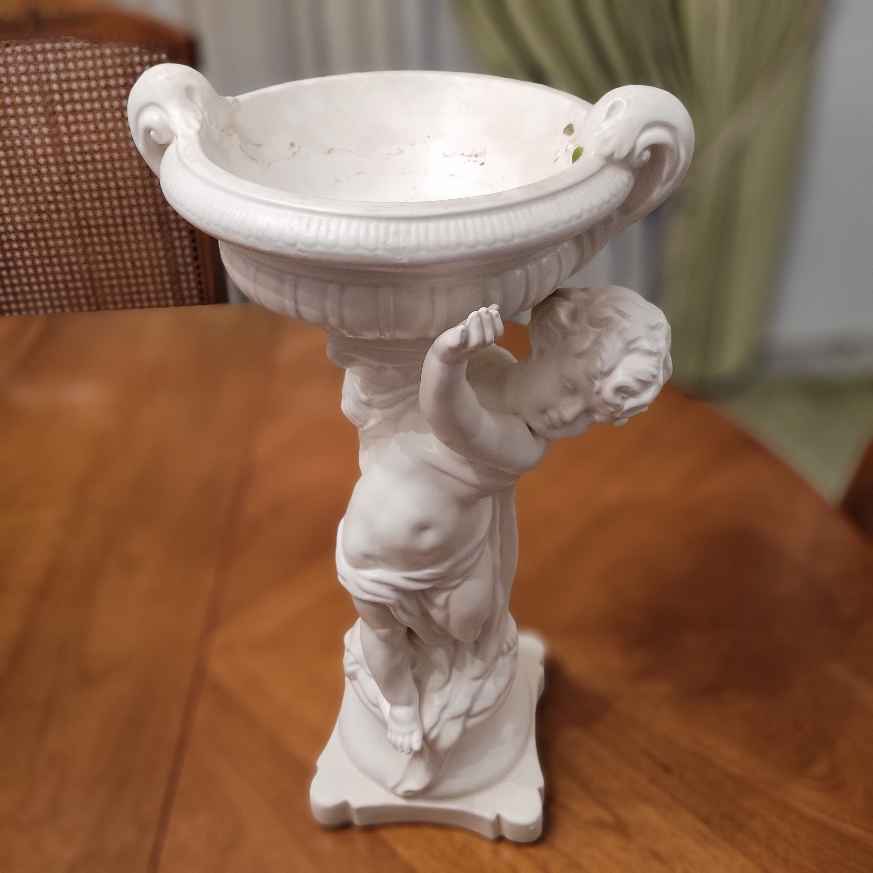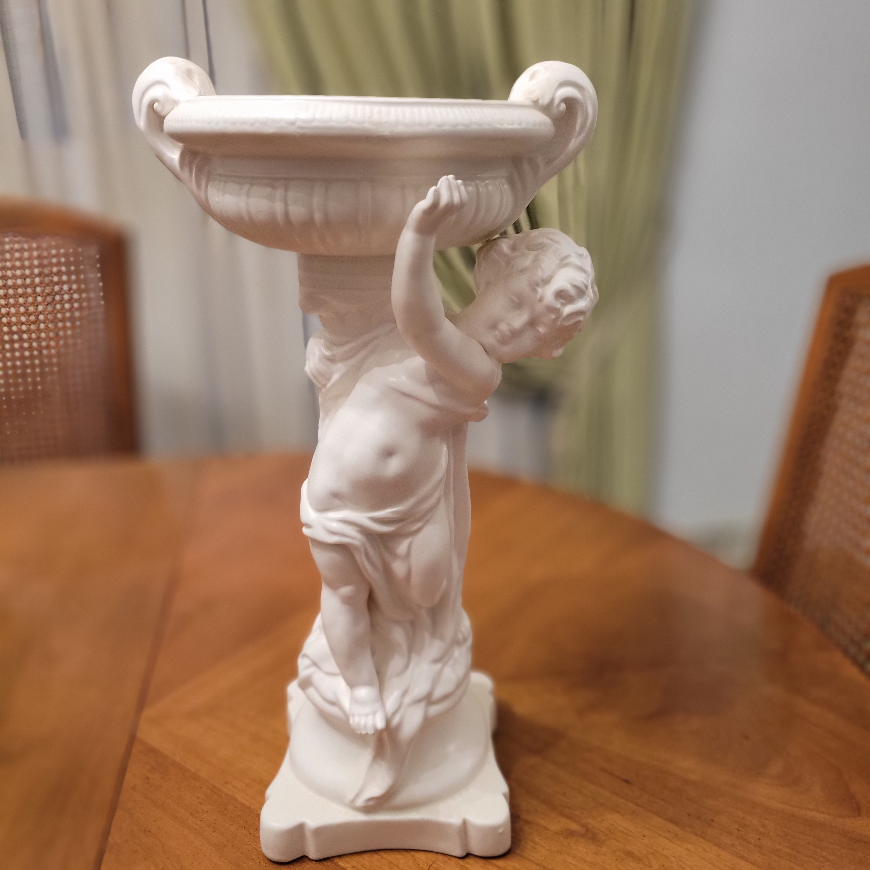 Inarco ceramics are sought after by collectors of mid-century decor and vintage ceramics. This specific piece, featuring a cherub and classical column design, is particularly appealing due to its detailed craftsmanship and nostalgic charm.