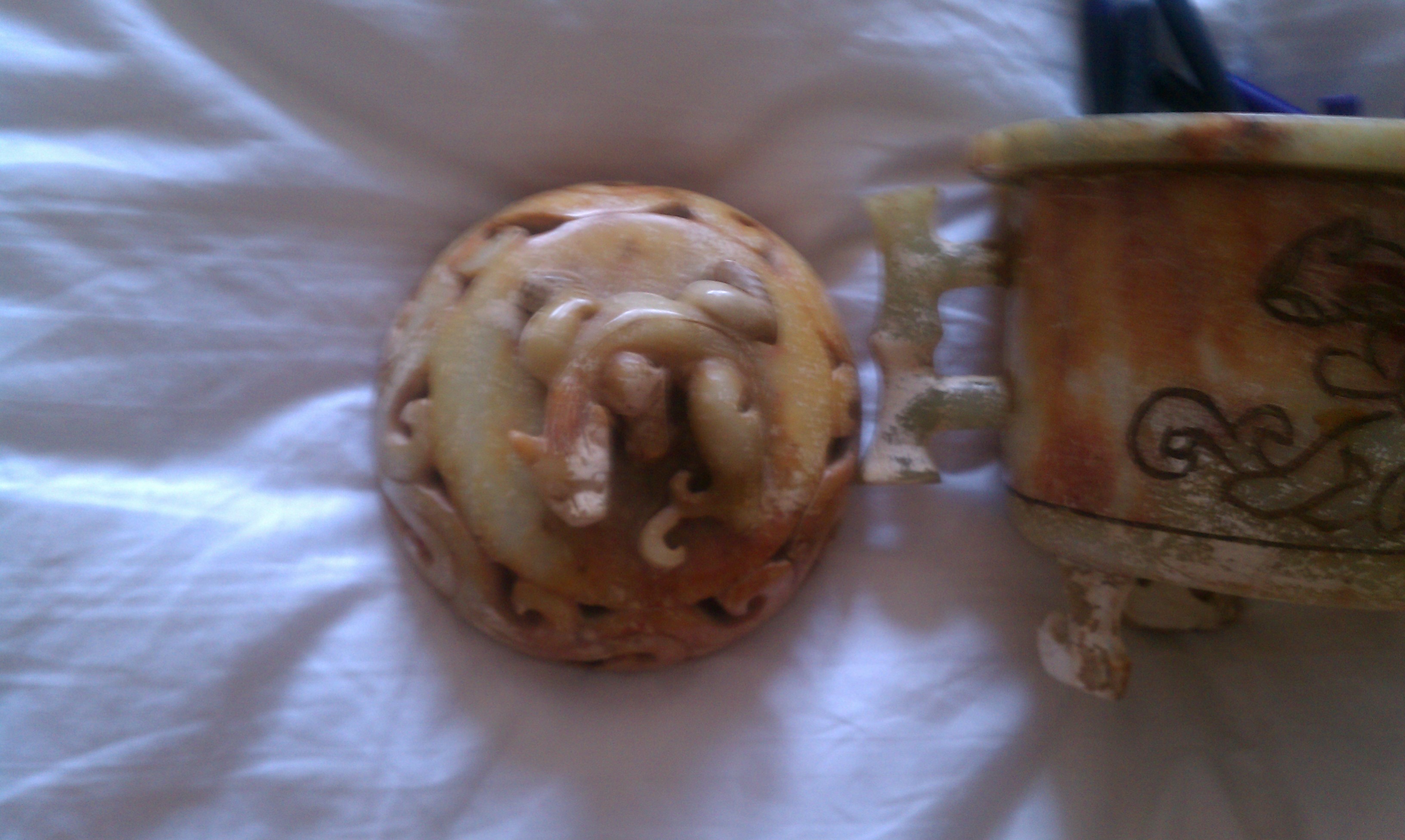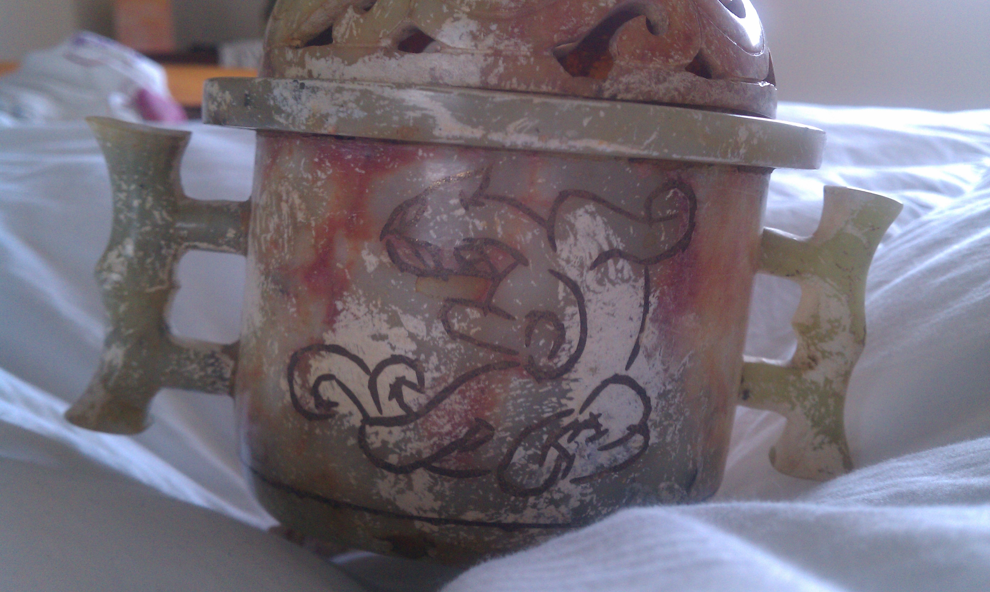 Incense Candle Holder, probably 19th century, made of jade and bought in China. Artist name : Wu Xiang Ming