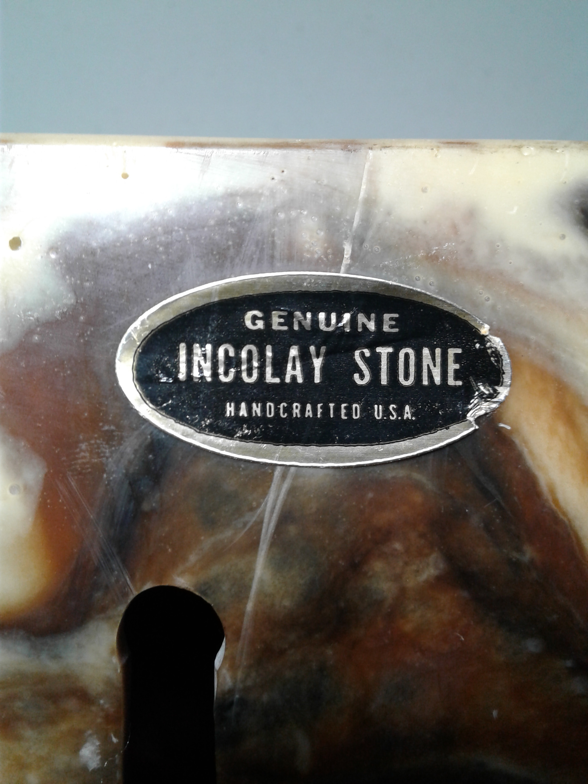 Incolay Stone Handcrafted Box. Made by Incolay Stone. Dating to c. 1974. Materials: Incolay stone. Estimated value: $150 – $250. Condition: Excellent. The market for Incolay Stone items is currently stable, with moderate demand among collectors of decorative arts.
