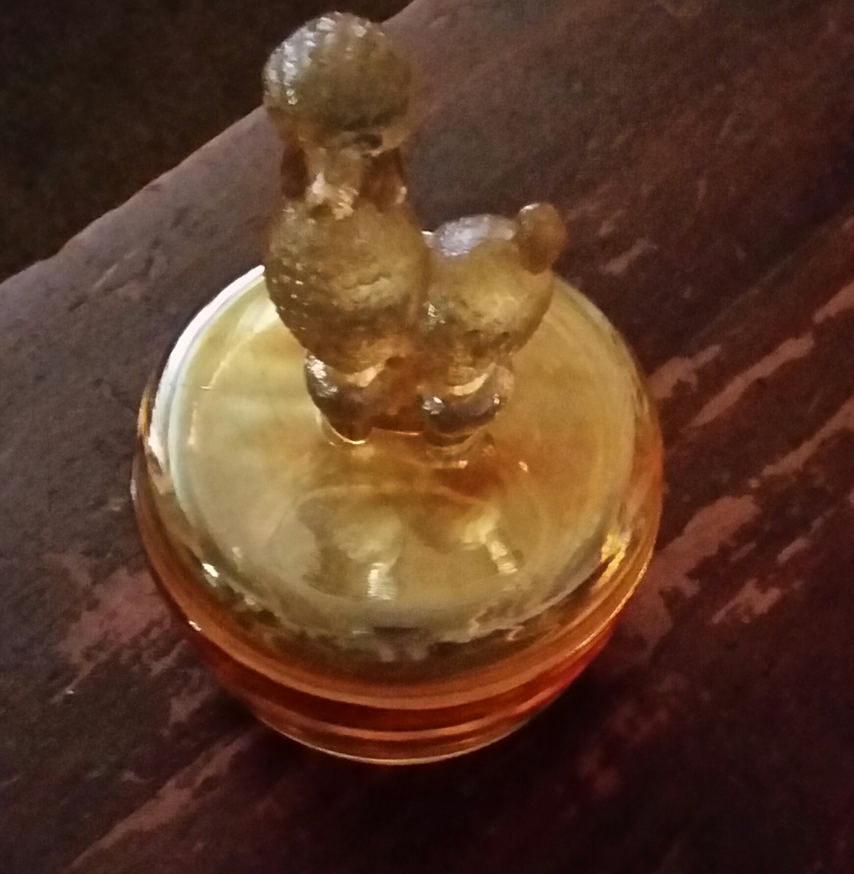The other piece I have is an amber glass poodle that has been handed down in the family it is as far as I know from the 1940s or 1950s.