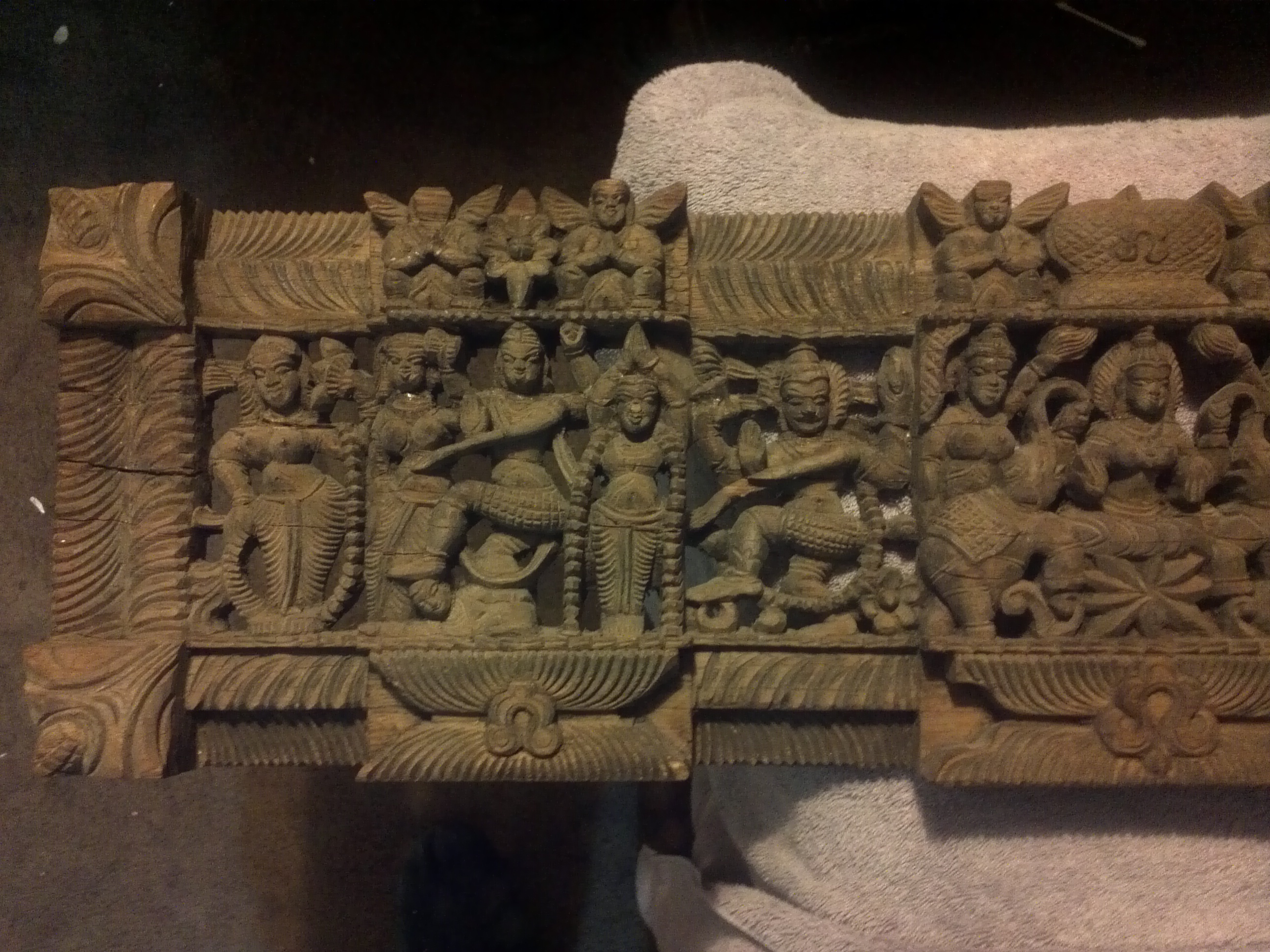 looks to be old on i was told teak wood carving from india, don't have to much info if someone can help me out in finding info on this and maybe a price estimate