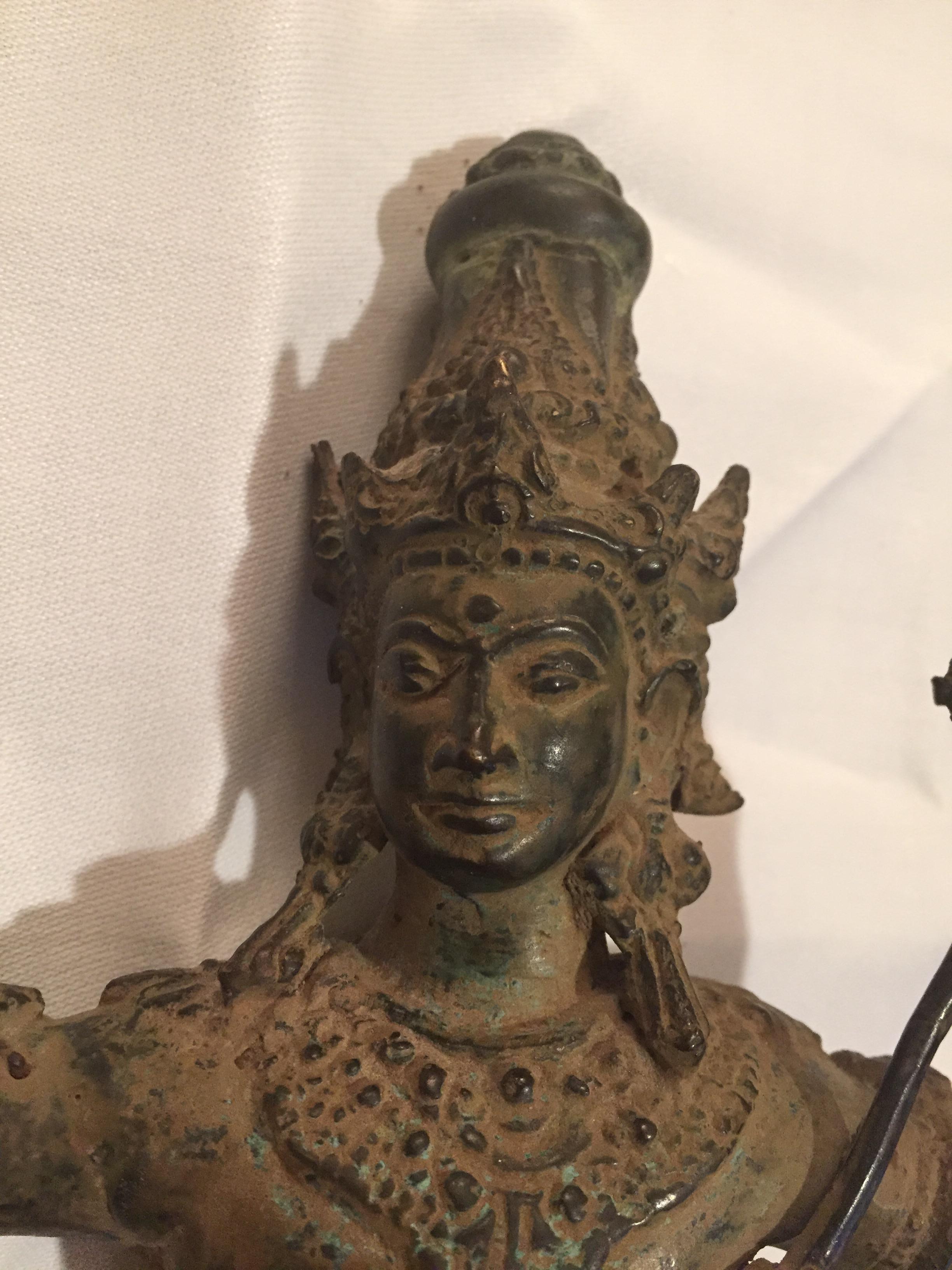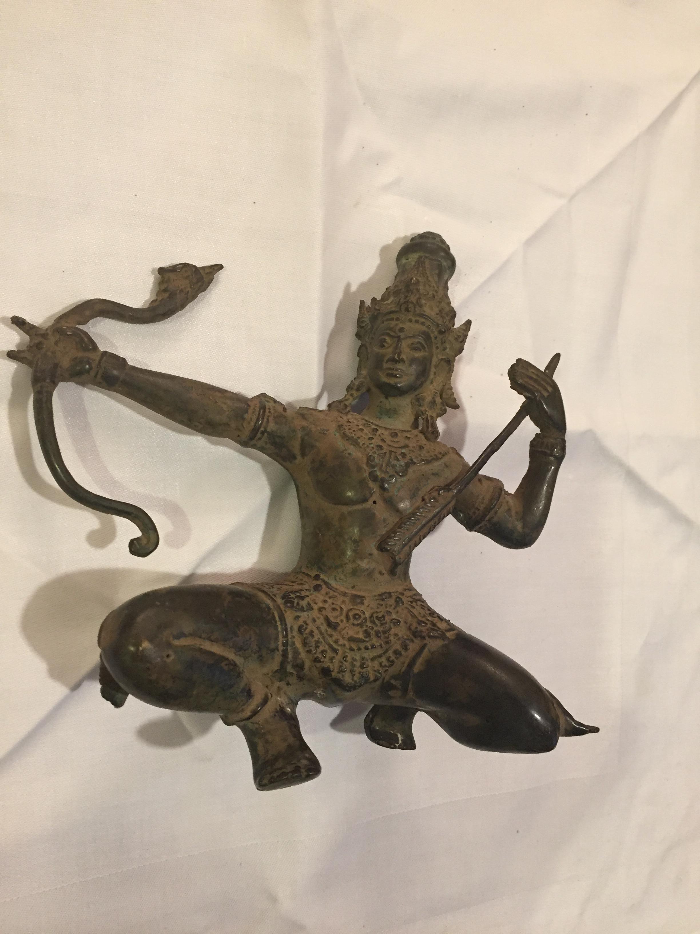 I see both Indian and Thai elements in this sculpture (after all there are thousands of Hindus of Indian origin living in Thailand) and I believe this to be the popular deity, archer King and Prince Rama or Ramayana. He stands for chivalry and courage.
