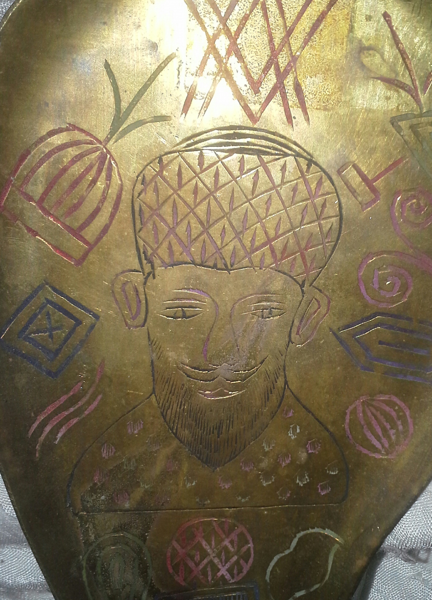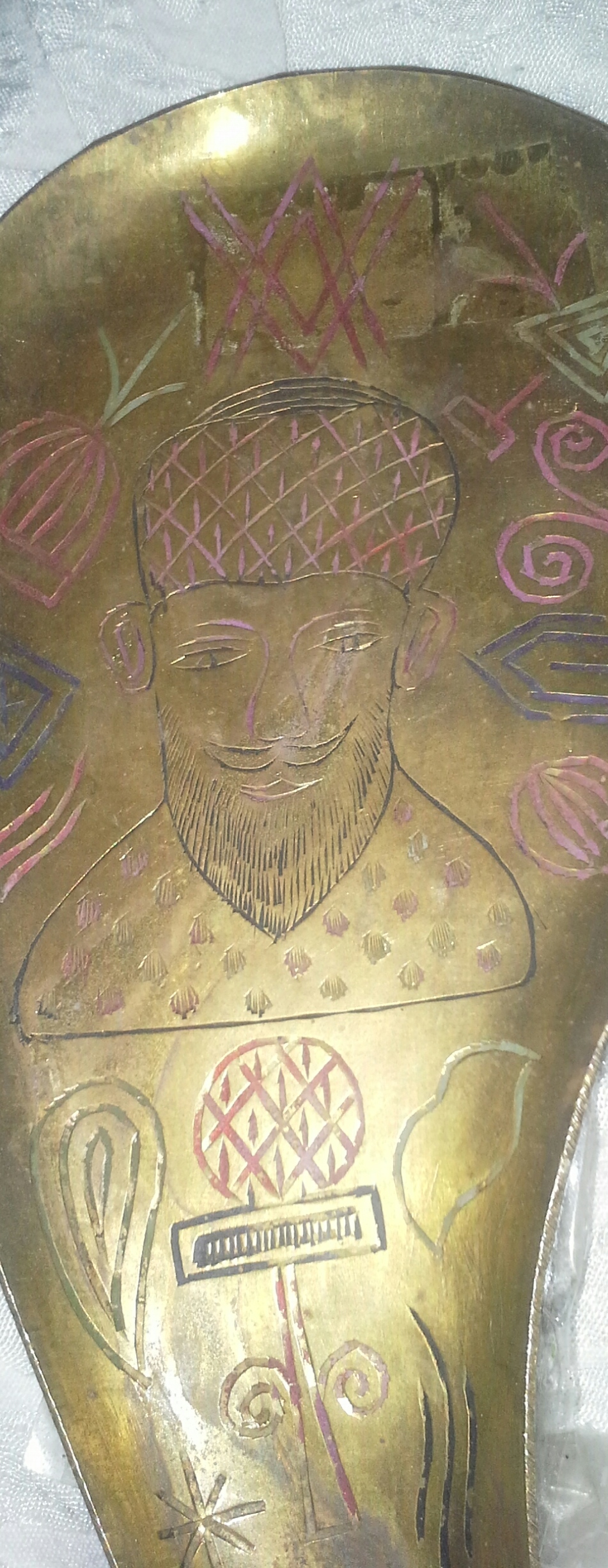 I have a set if 4 brass like trays/spoon rests possibly? with the same man face on each.