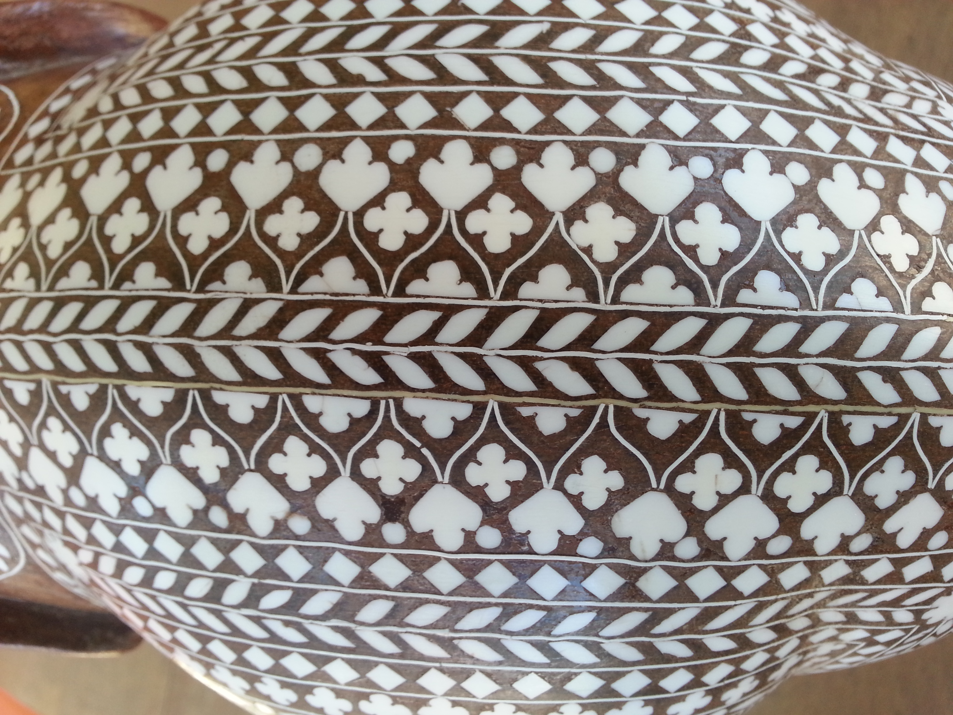 Purchased in India. Hand carved solid wood. Very heavy... beautiful inlays.. any information would be appreciated