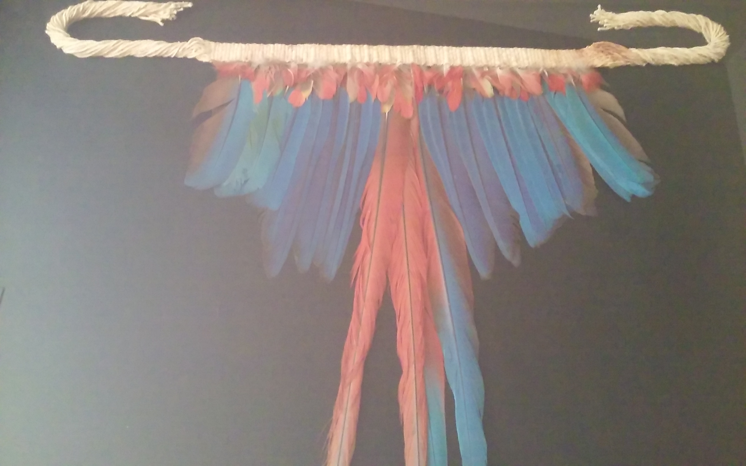 Indian head piece framed in 1992.This piece is believed to be from South America possibly Brazil. It is also made of Macaw feathers.. If anyone has anymore info on this piece please feel free to share! Thanks!