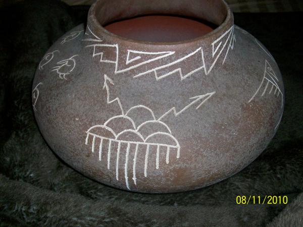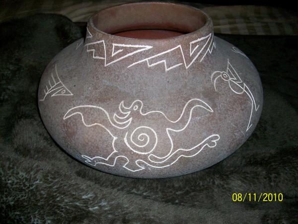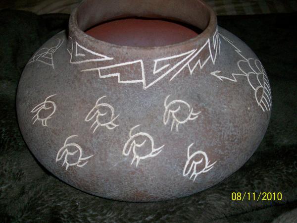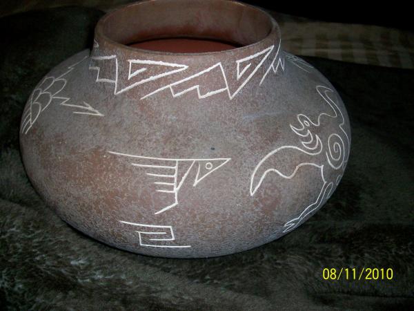 This piece was another item I found out in the middle of nowhere in Oregon. It is in great condition and has wonderful drawings all around. The drawings are cut into the sides as is the mark on the bottom.