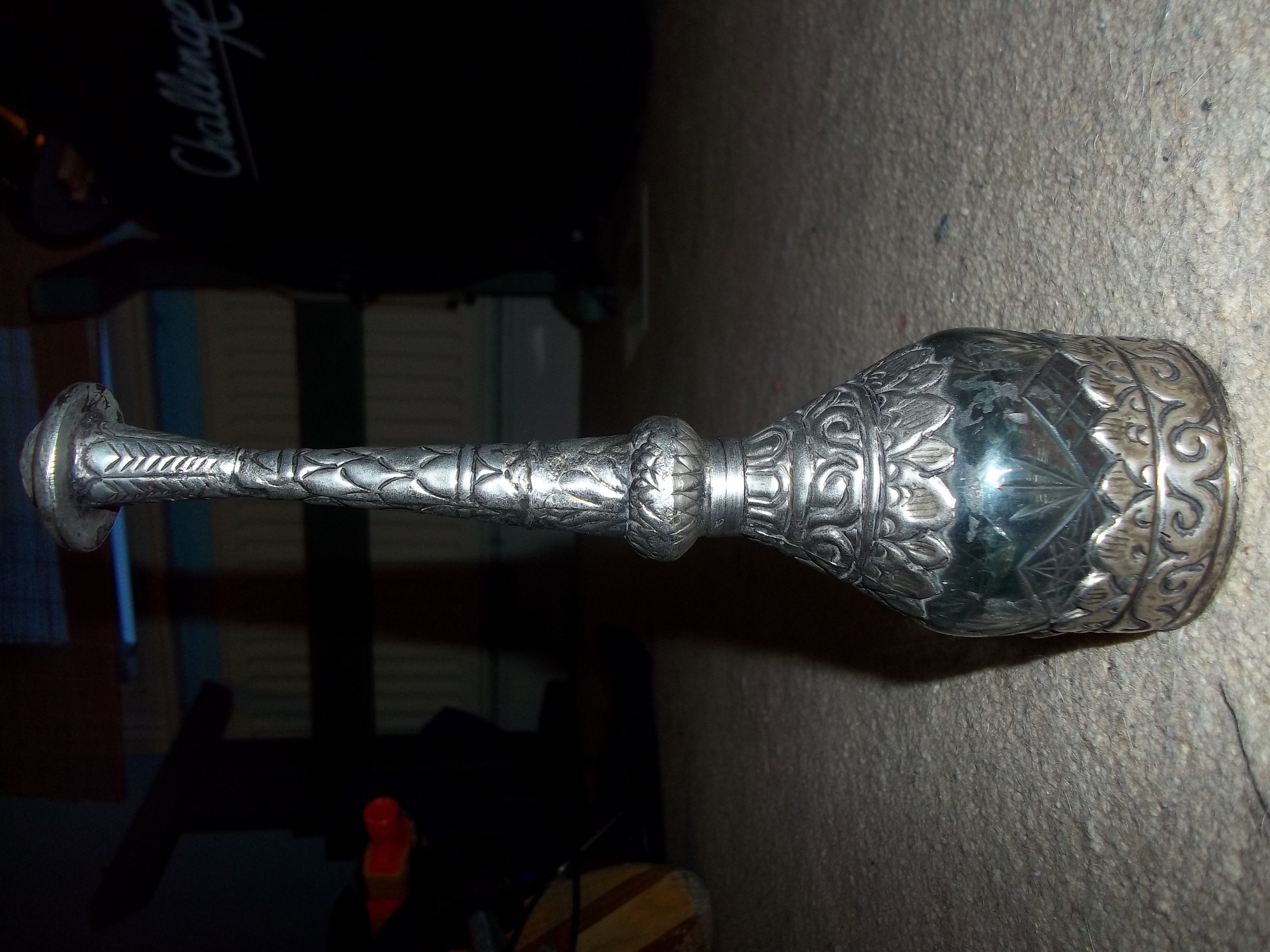 This bottle was given to me by my Grandma. She told me it was an Indian Rose Oil Bottle. There are patterns all over it including the glass. There are 5 holes ontop which I presume is for liquid to come out. The top screws off from the base. I am guessing it is from the early 20th centry era. I have virtually no information about this bottles history. I would like to know if anyone has more information on the bottle.