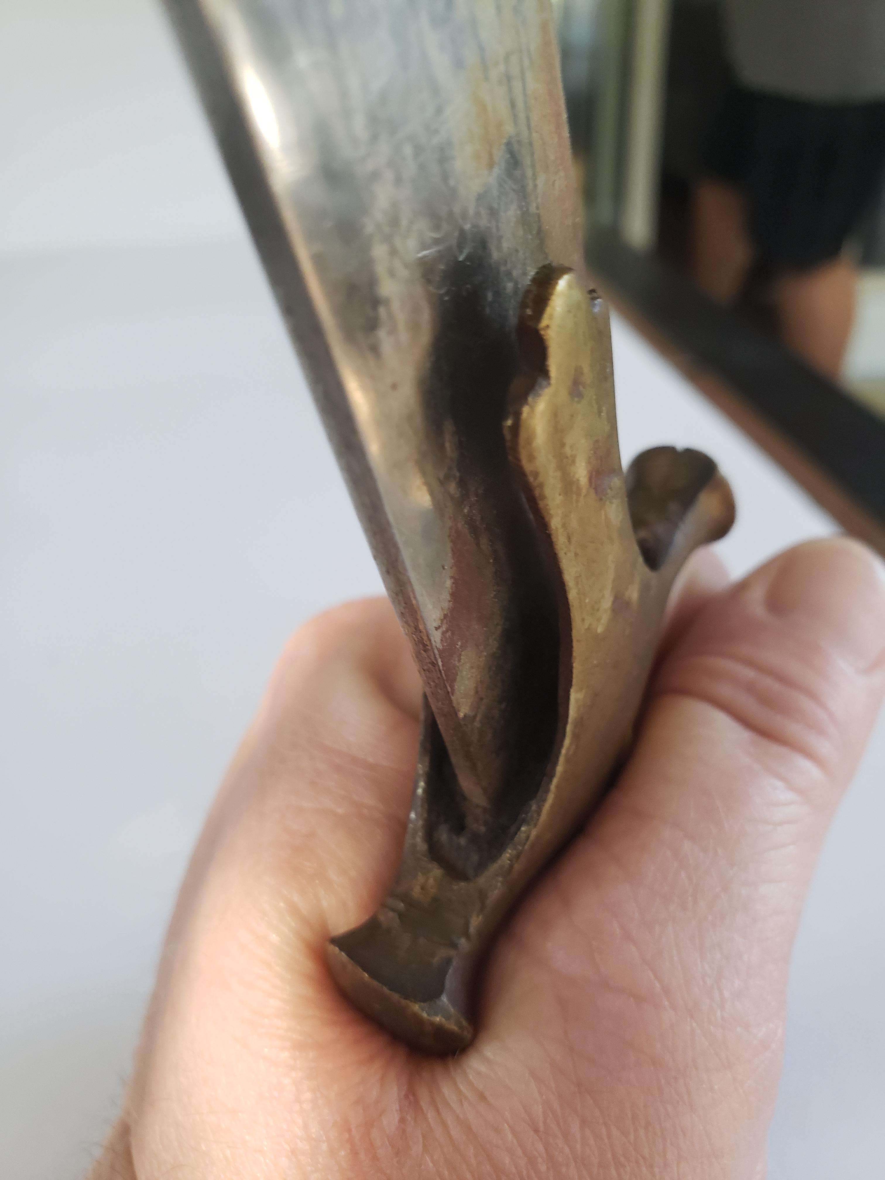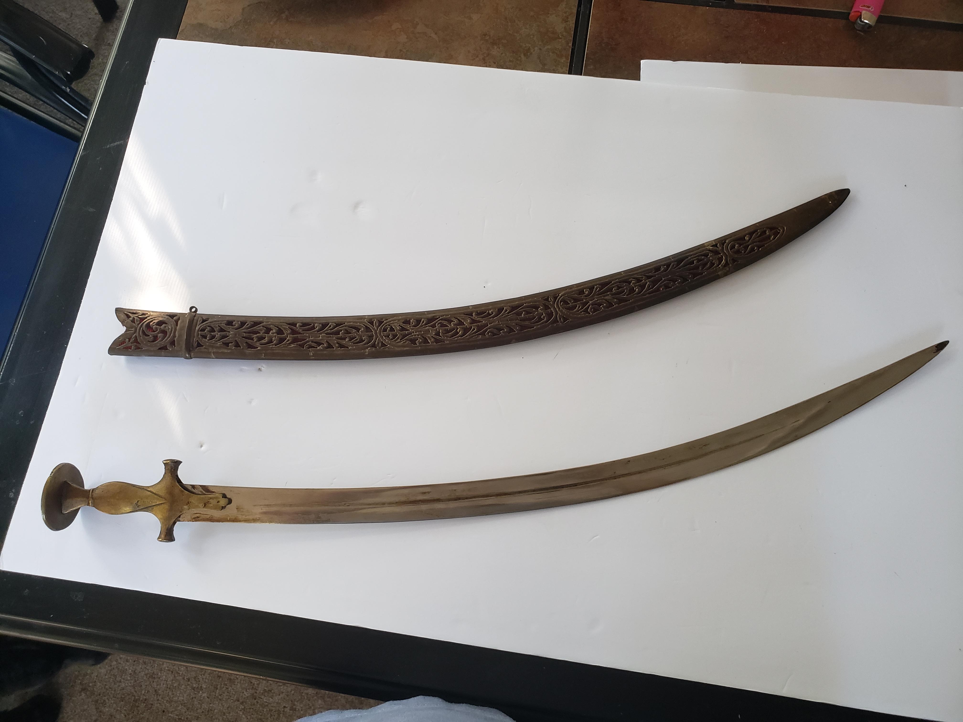 An original Tulwar Sword Scabbard was made of wood and covered in cloth. As a result many did not survive over time. The INDIA stamp was done to make it easier for tourist to leave the country with them going through customs.