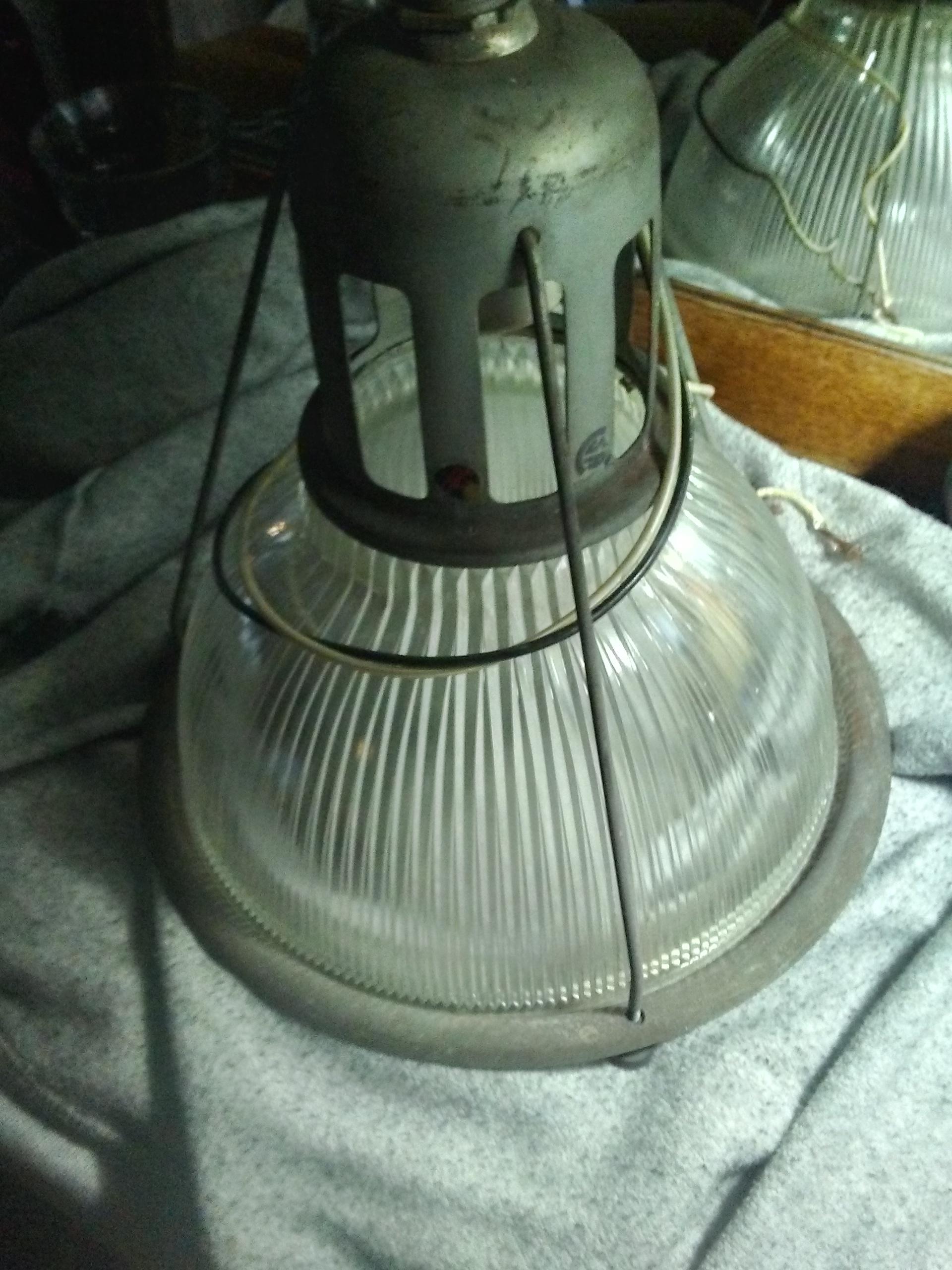 Approximately 1950s prism Warehouse lighting glasses stamped Halophane