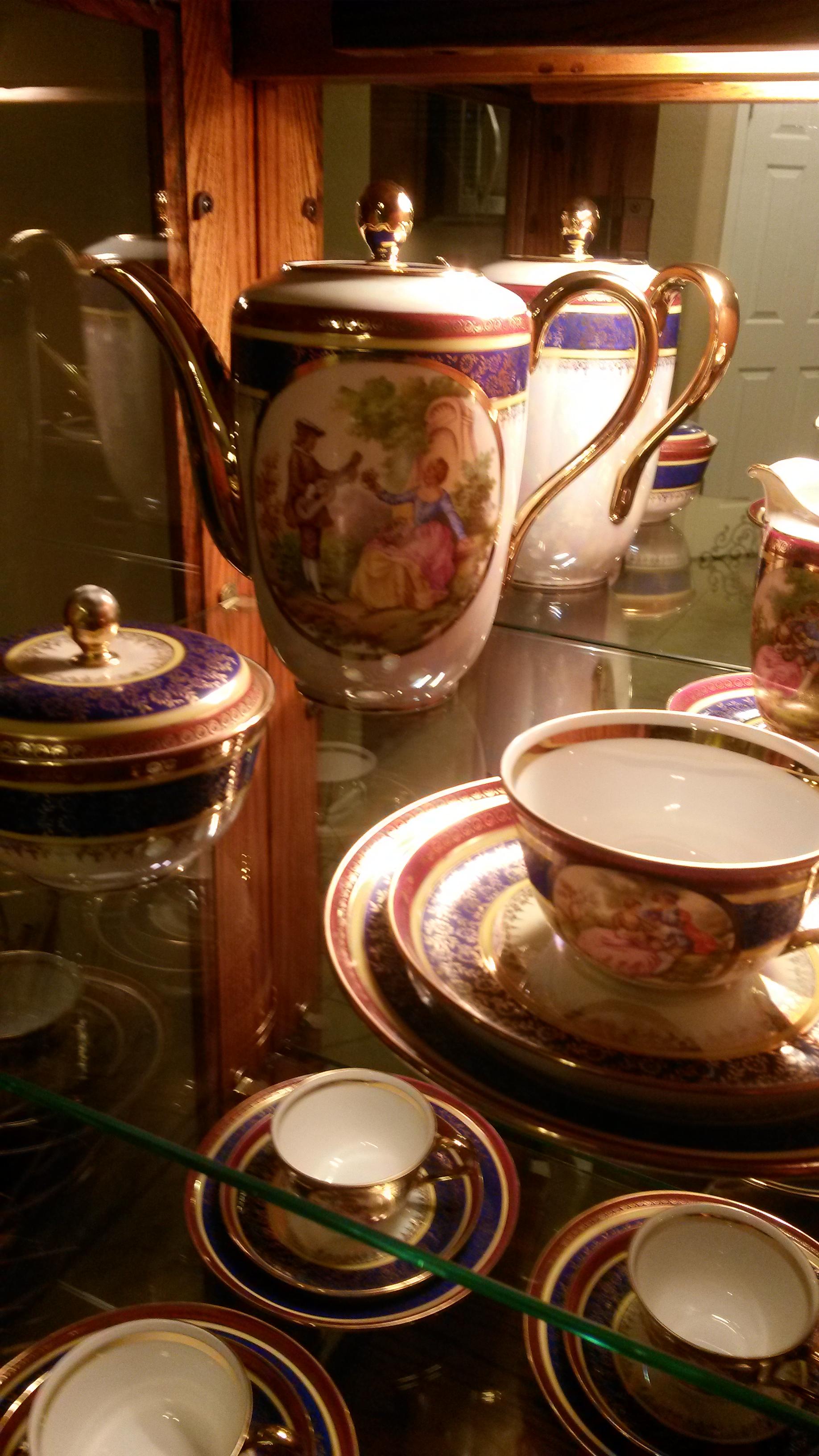 I have inherited this set some time ago, and have never been able to find the pattern. I would like to know what pattern it is and the estimated value. I have the pitcher, sugar dish, creamer with a saucer, 5 cups, 5 saucers and 5 small plates. It is all in very good condition.