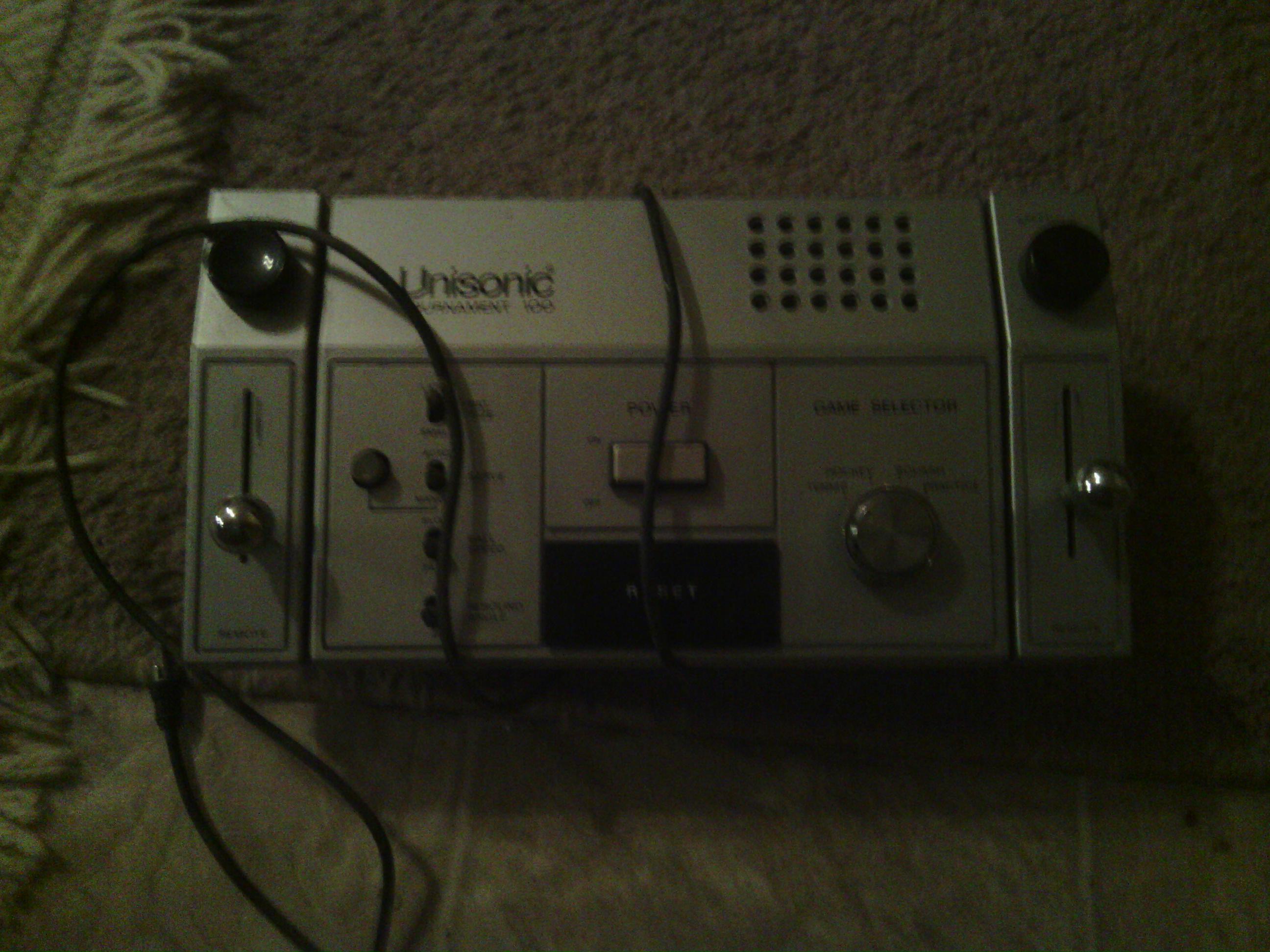 Looks older then Atari has four games practice tennis Nicky and squash two controllers connected to console with built in holders