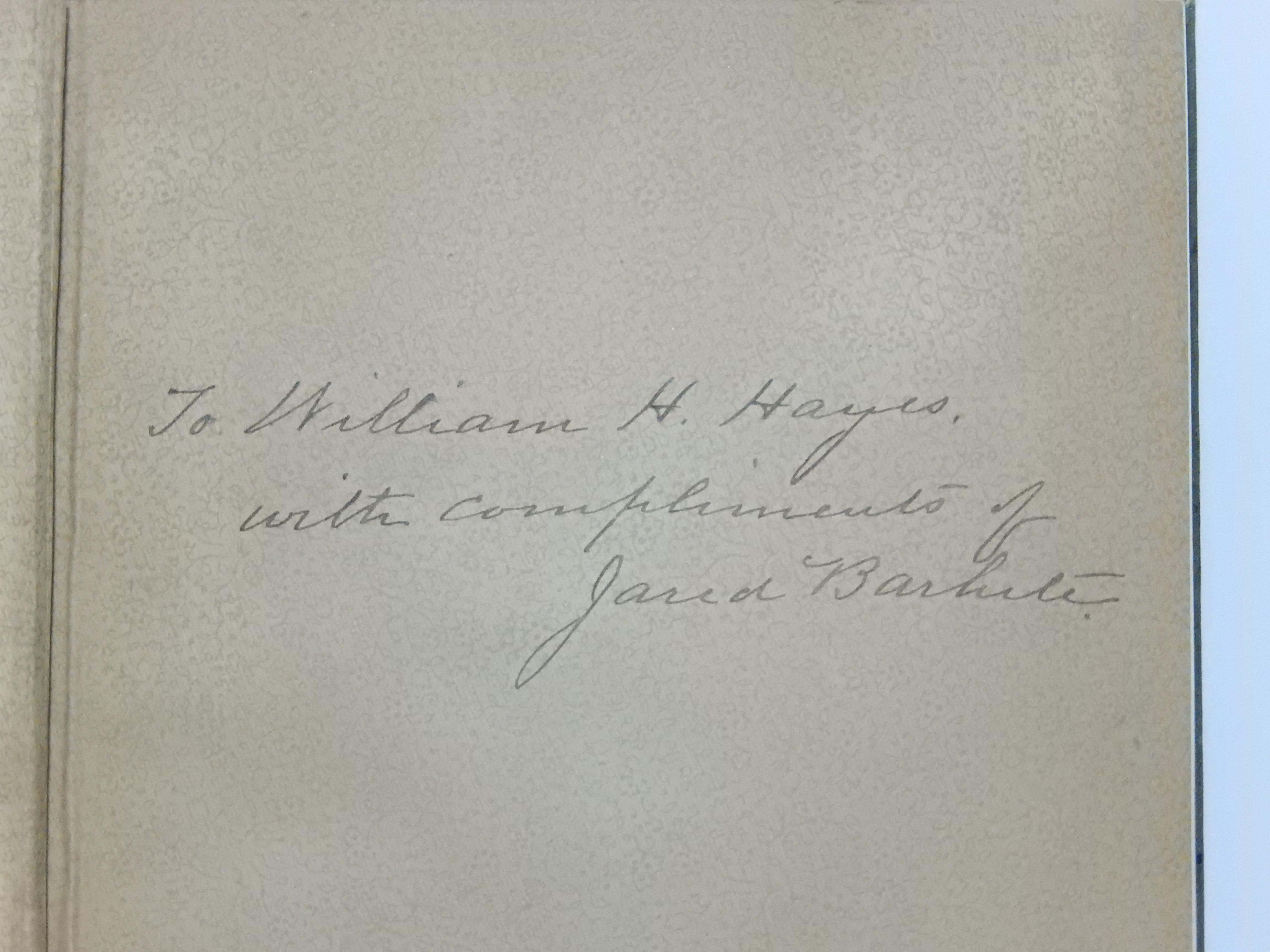 Inscription reads "To William H. Hayes, with compliments of Jared Barhite". Did some research and don't know who William H. Hayes is.