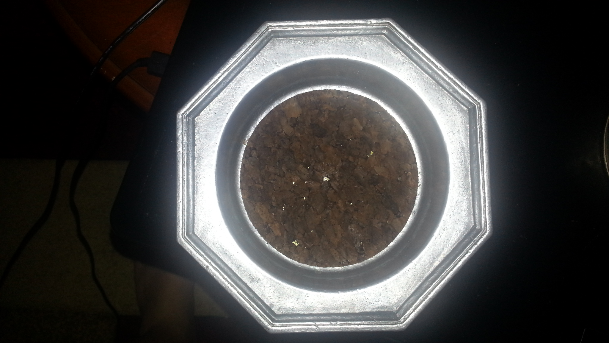 I found this bowl or dish with cork on the inside with the marking international silver company and stamped i s and a little c on the bottom of the dish it is in excellent condition it's in the shape of an octagon I don't know what it is made out of or what it's worth any information would help