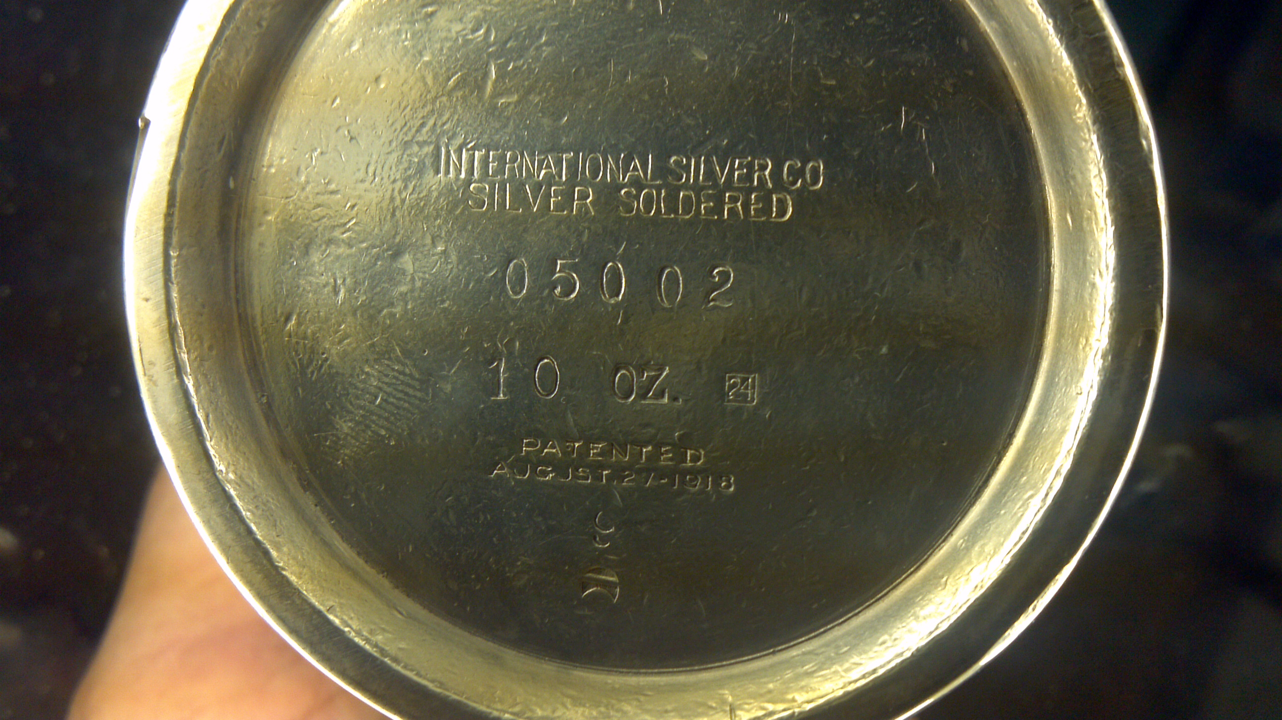 I have 2 Teapots. The first one is all silver,weighs 15.75 oz, on yhe bottom it has: International Silver Co with Silver Soldered under it,there is an 8 with a u under it,05002,10 oz,Patented with August 27,1918 under it and the number 24 inside a square. The second one weighs 16.45 oz, It has International Silver Co with silver soldered under it, 05002, 10 oz, 24 inside a square, patented August 27,1918, and a 9 with a symble that kind of looks like a pac man ghost. I have pictures with this post of both teapots. Thank you for your help in appraising these for me.