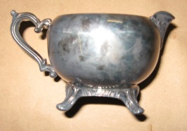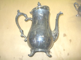 I am selling the belongings of an older couple who had to downsize to a care center. These four pieces were in their house. They had the tea pot the longest as it is tarnished the most. The other three pieces are tarnished some to almost none.