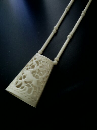 Intricately hand carved solid bone necklace. Not sure if it is antique or not, but at least 40 yrs old.