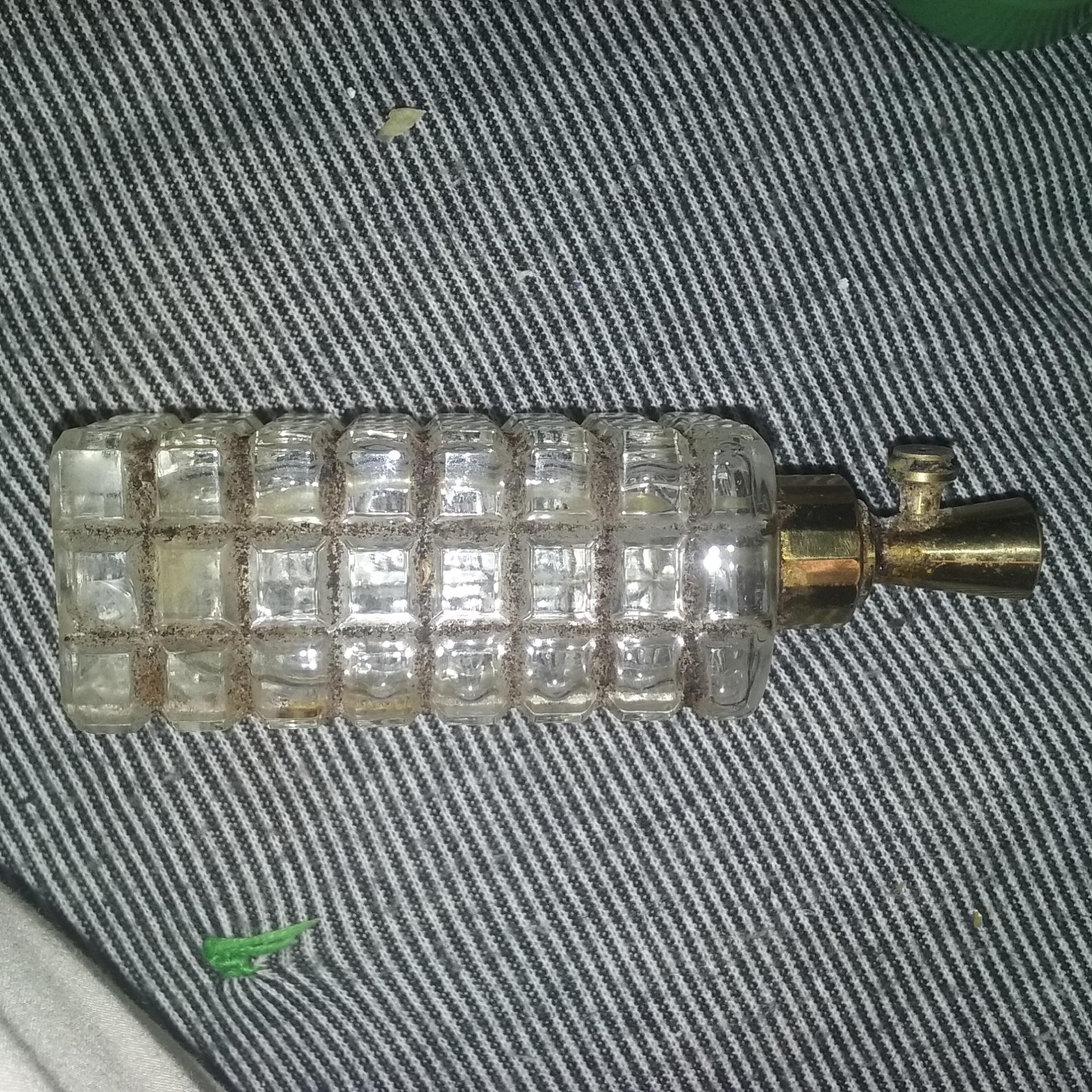 L W & Rice Co, clear glass, rectangle with cut small squares brass metal top