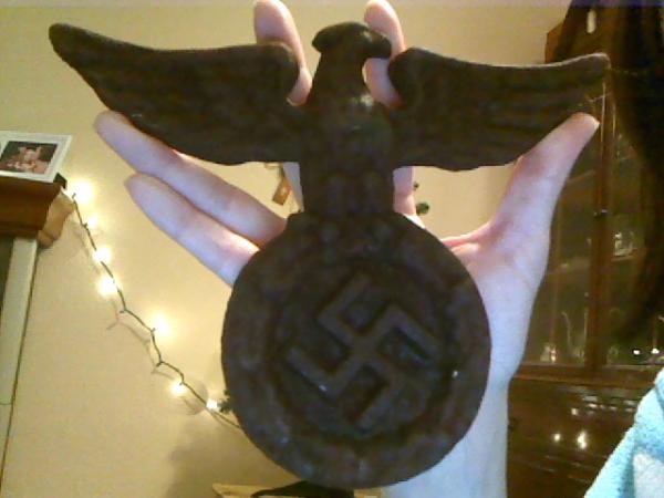 This was found at an antique shop, I really have no desire to have it any more. I'm not into Nazi stuff or war collectibles. I am hoping to find out if its even a real antique and to just get rid of it for a decent price. It is completely covered in rust, there doesn't appear to be anything on the back of it