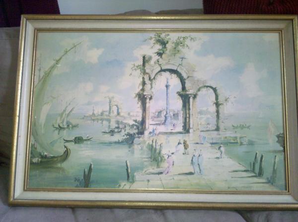 I can't tell if this is a print or the real thing. It is not on a canvas it is on a poster board like paper. I will attach a picture of the front and the back which has the title of the painting "The Isle of Istria" and the artist. I also have another painting by this artist but I don't have it up on the site right now as it is in storage. Thanks!!
